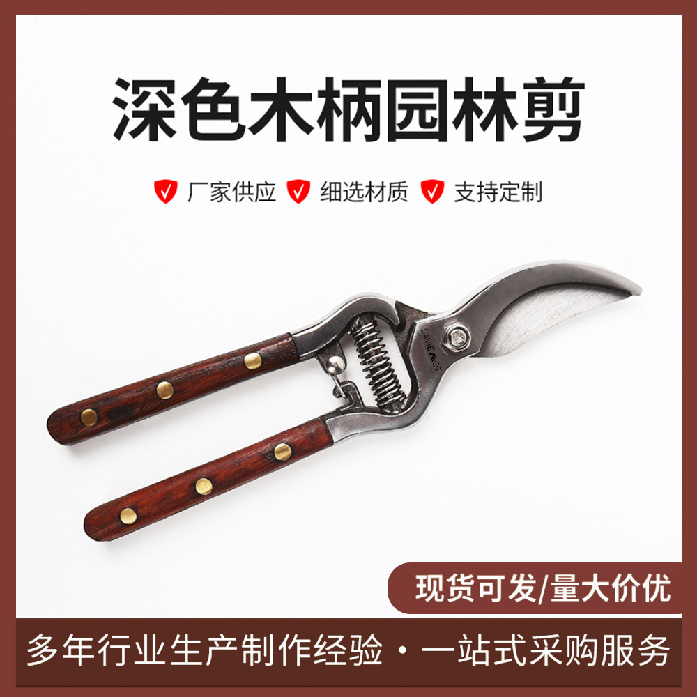 国境を越えた新しい剪定鋏、マホガニーフルーツ、柳の木のハンドル、花の木の剪定、枝の剪定、花の摘み取り、家庭園芸はさみ