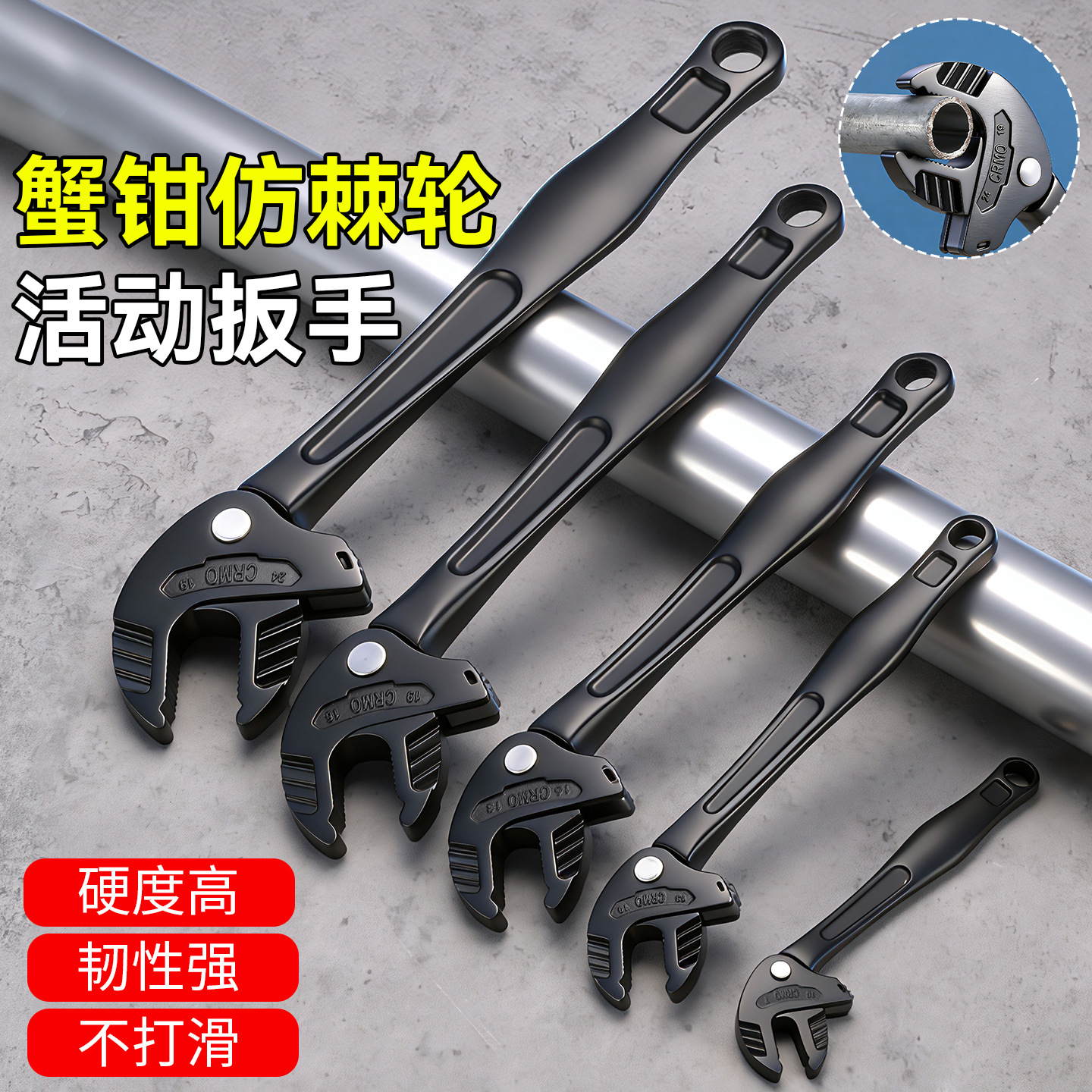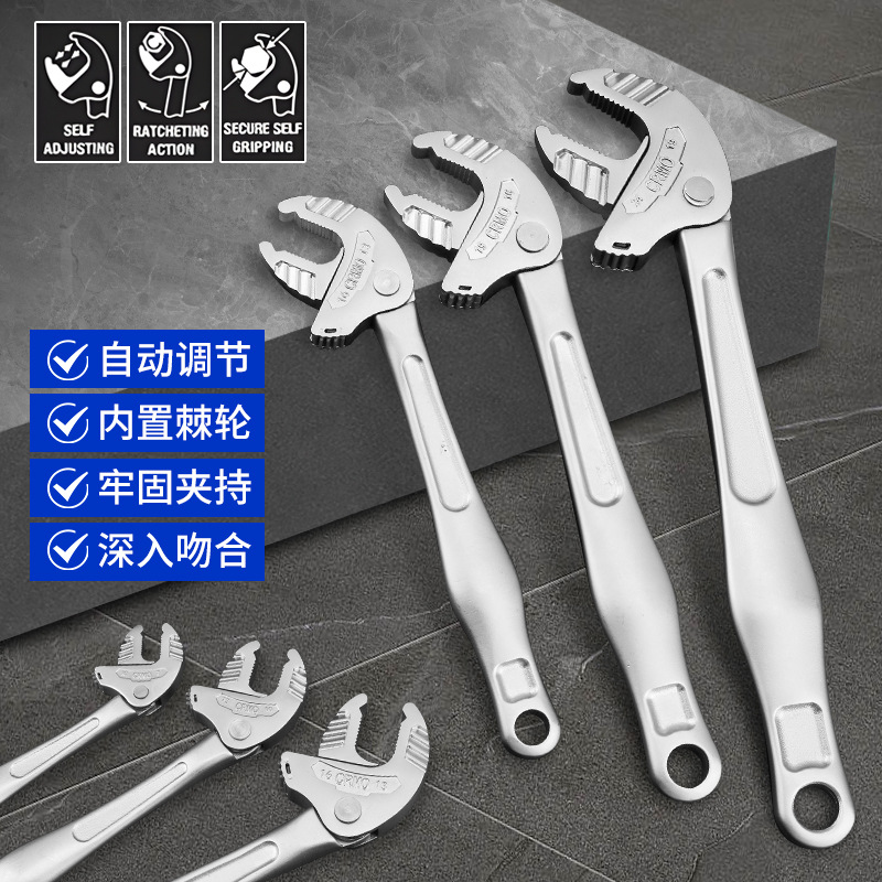 新款蟹钳式活动扳手多功能快速自适应仿棘轮工业级大开口扳手工具