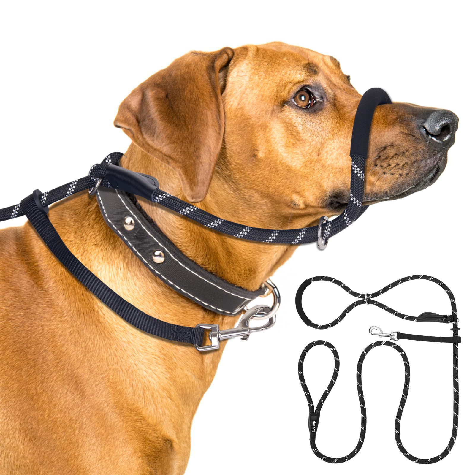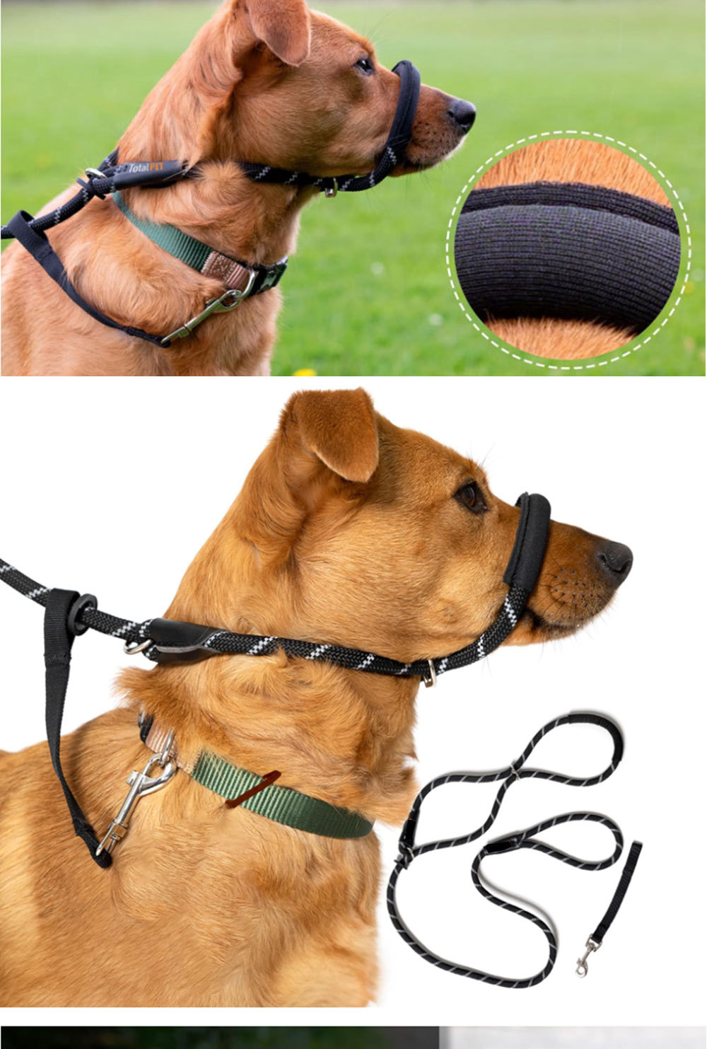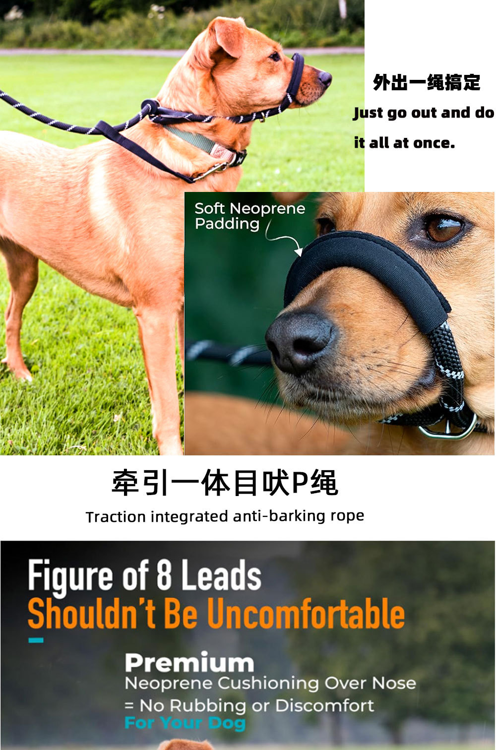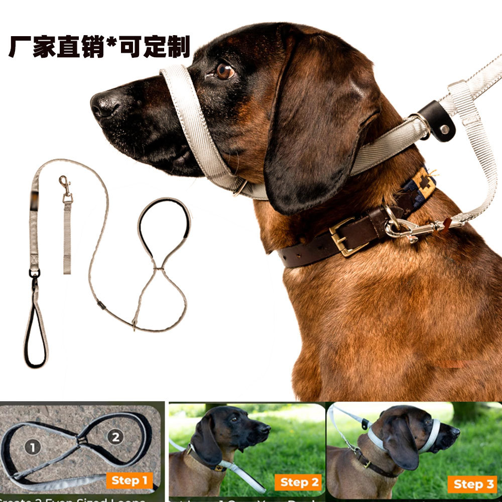 厂家直销防缠绕狗狗牵引绳外出遛狗绳一体式止吠狗嘴套亚马逊现货