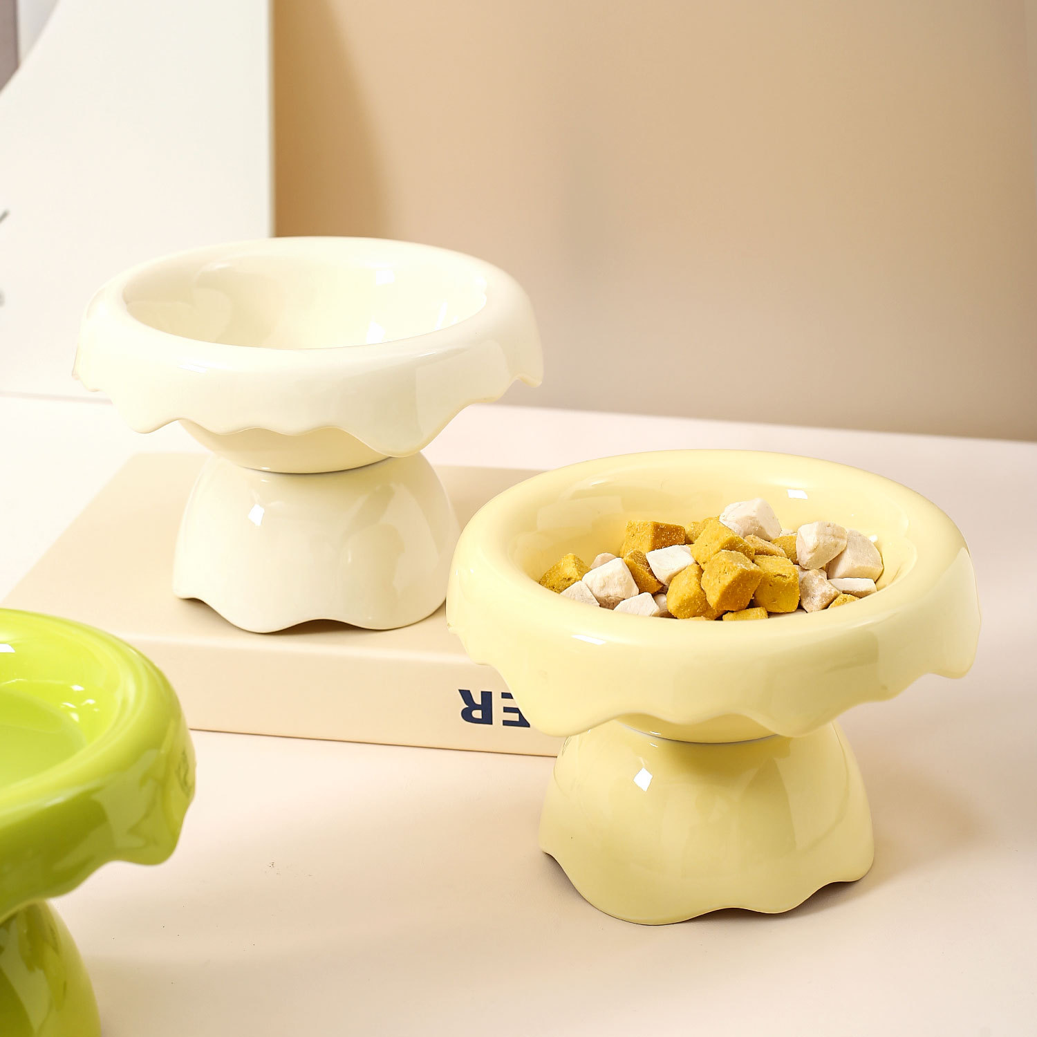 花びらの猫の碗の陶磁器は取り外し可能な高足の碗の猫のたらいの頚椎の犬の食糧の碗のペット用品の猫に水の碗を与えます。