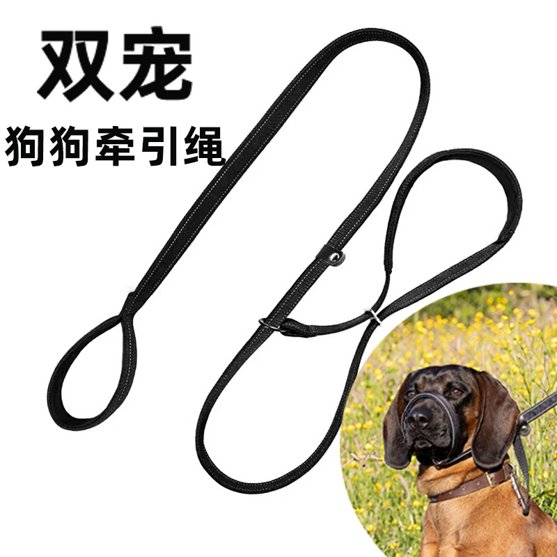ペット牽引ロープナイロン編み反射ダブルハンドルドッグロープ犬用品防爆冲牽引犬ロープ付き