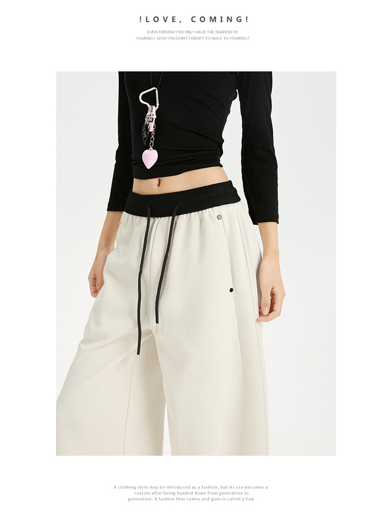 白いアメリカのスポーツズボンの衛のズボンの2024秋の新型のバナナの広い足は縄の束の足を引き出して腰が高くて痩せています。