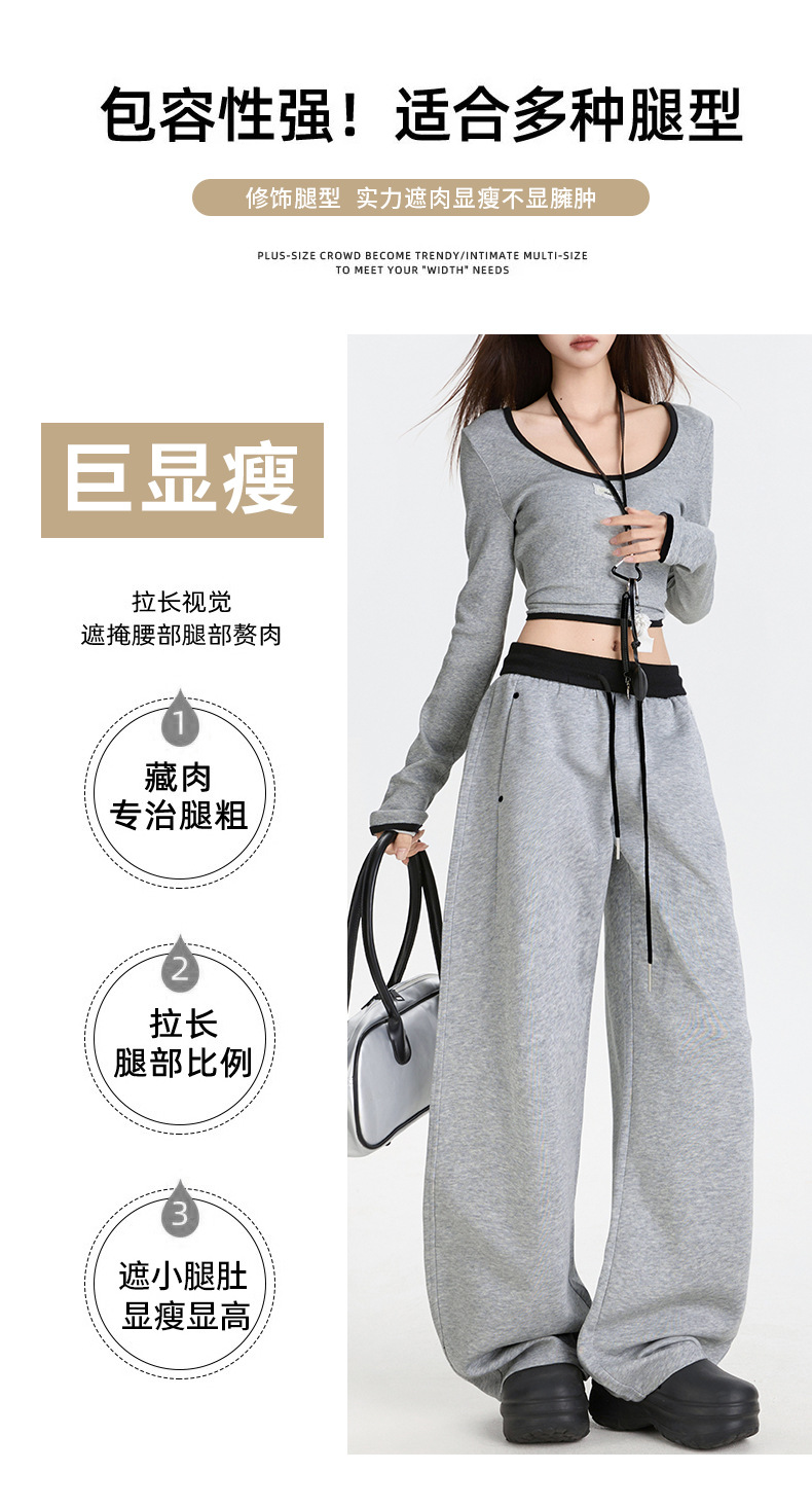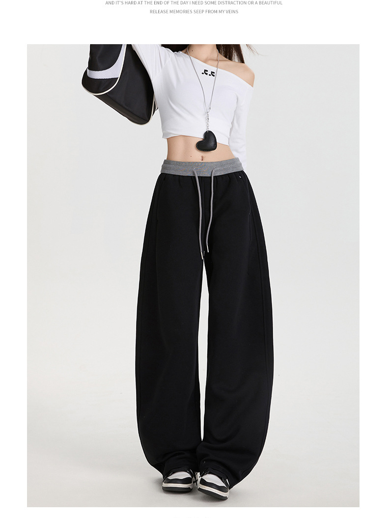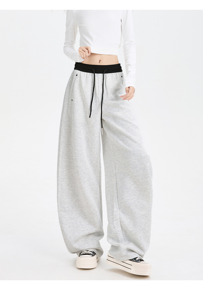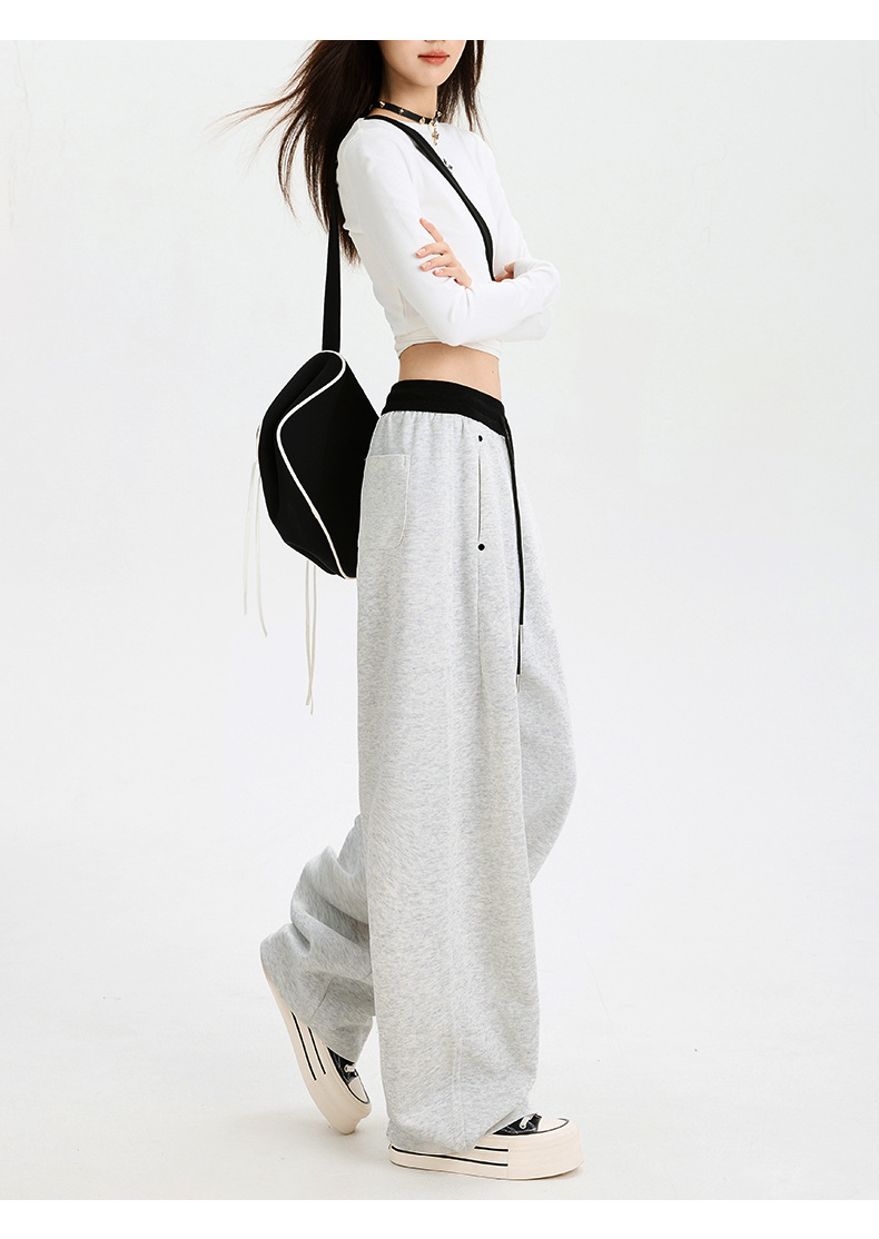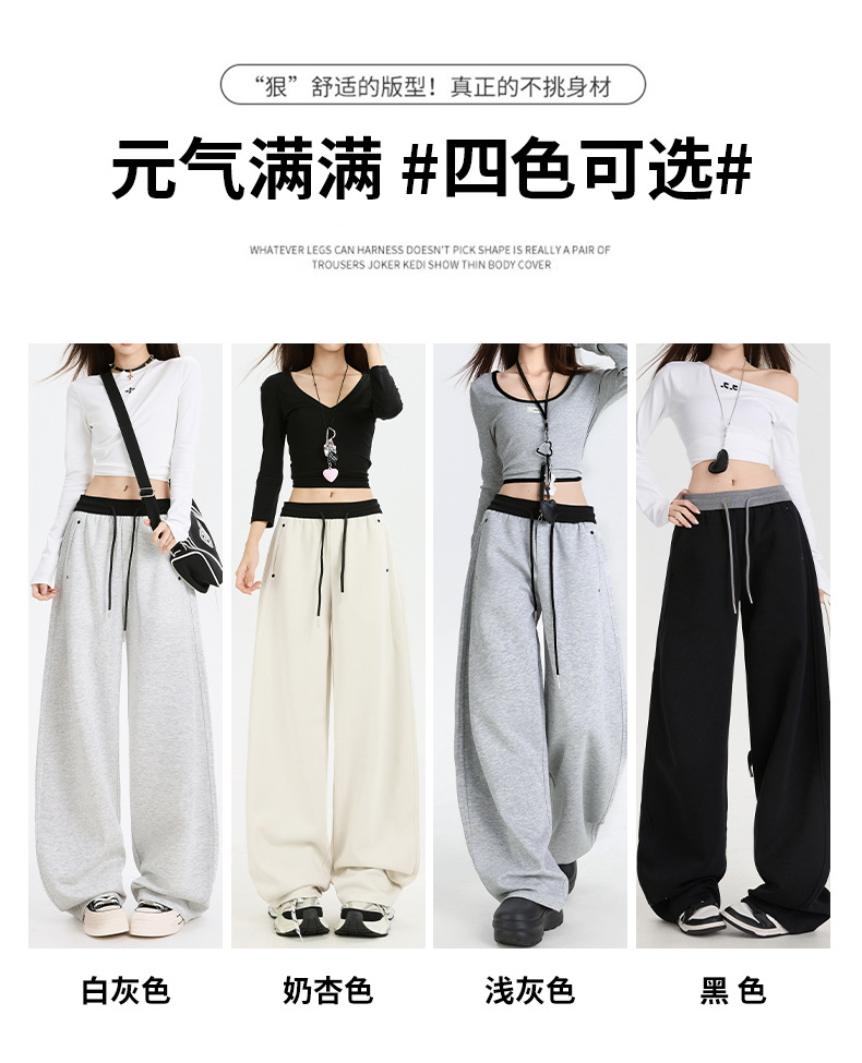 白灰色运动裤秋季2025新款高腰宽松显瘦垂感阔腿裤直筒休闲卫裤