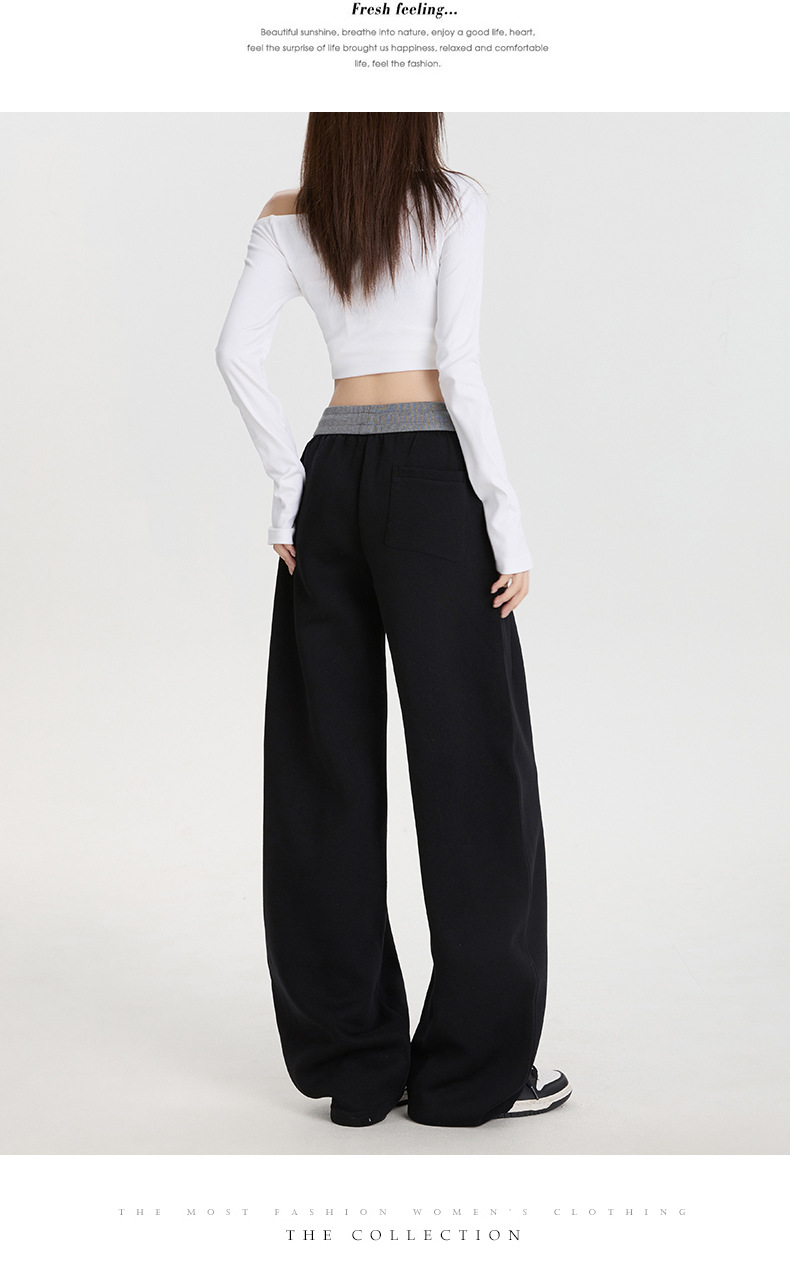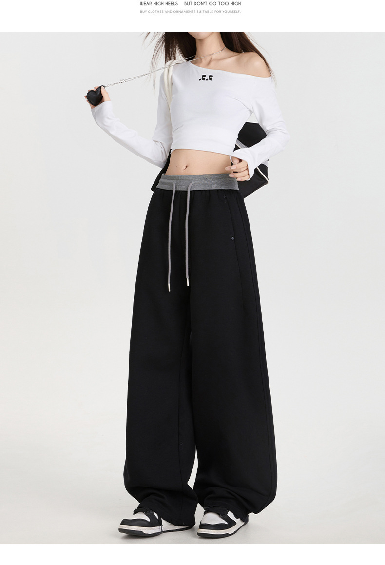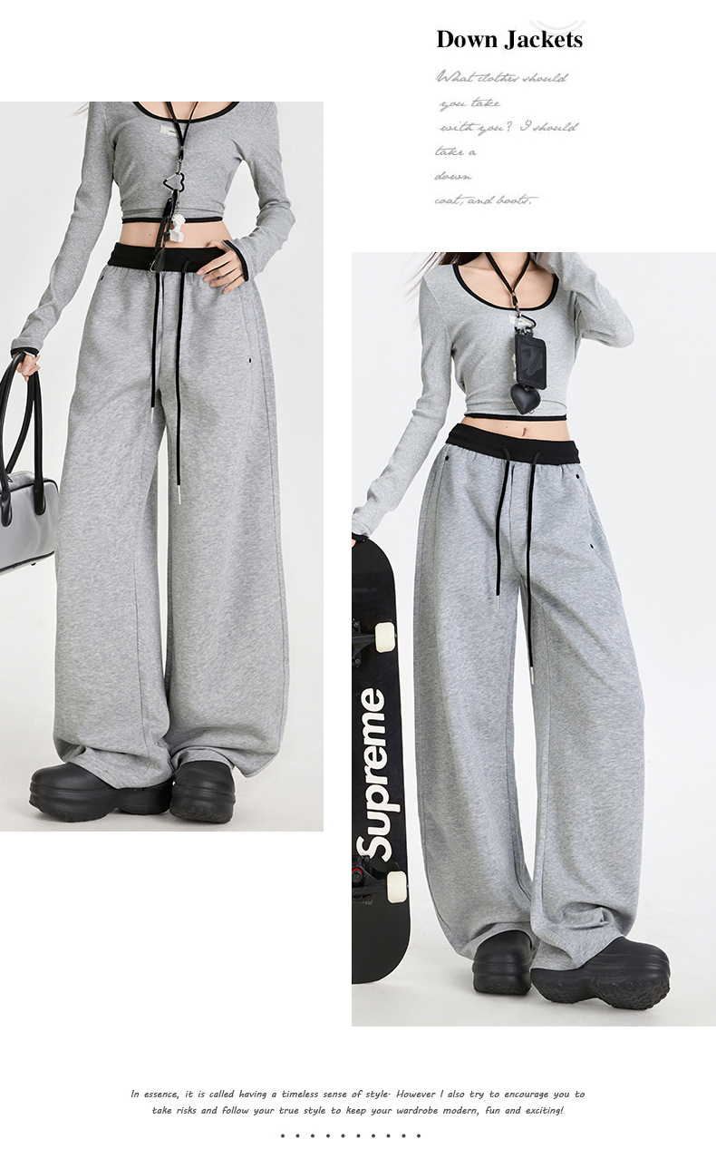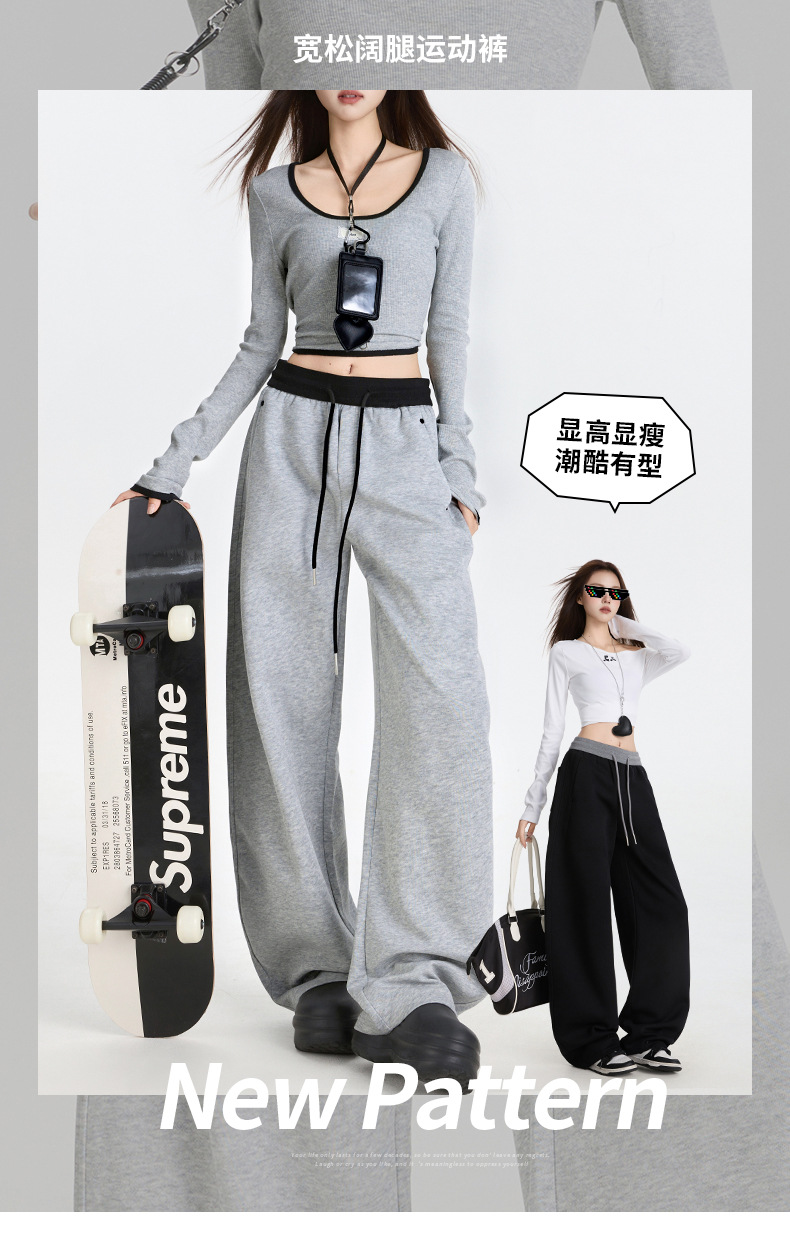 白灰色运动裤秋季2025新款高腰宽松显瘦垂感阔腿裤直筒休闲卫裤