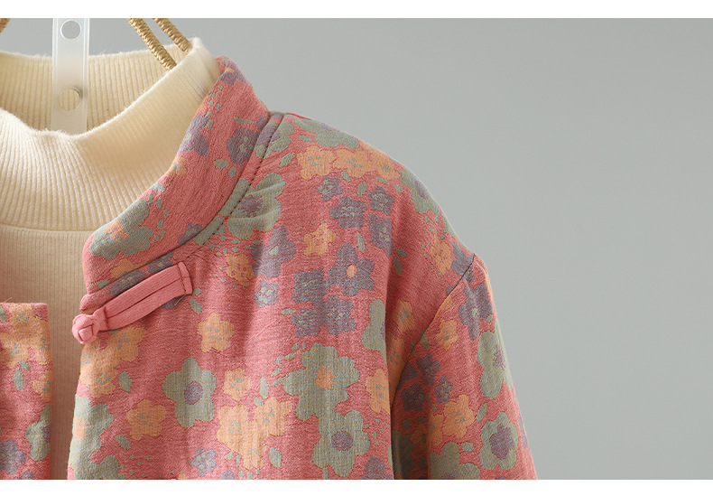 大码女装新中式盘扣棉服棉衣复古文艺立领小碎花棉袄外套冬