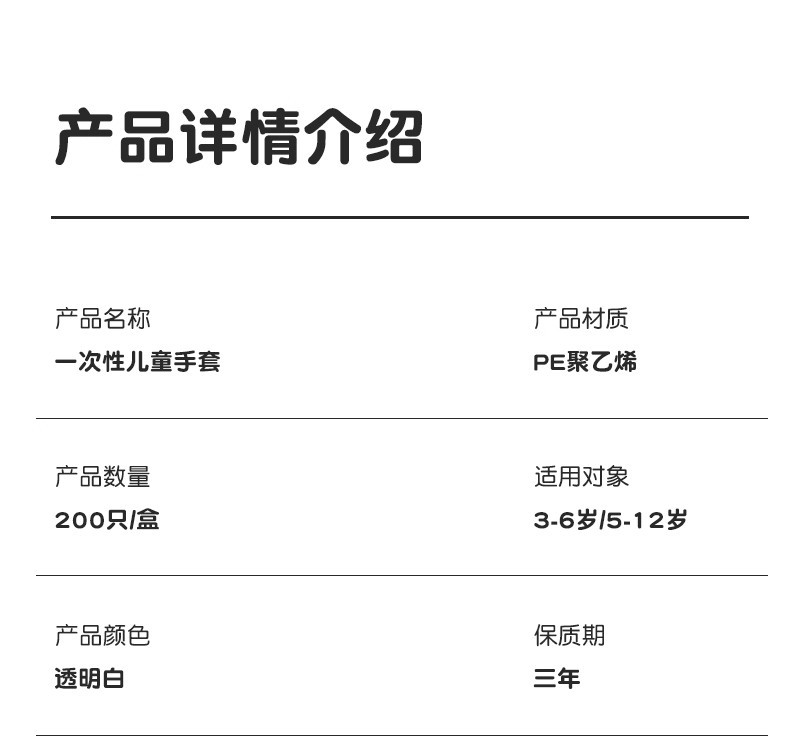 货号 儿童一次性手套