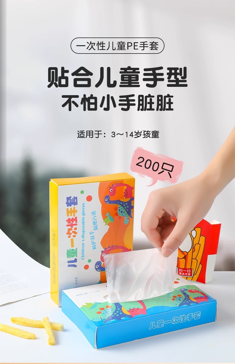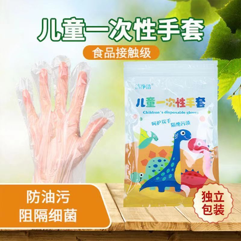 儿童一次性手套食品级专用PE独包小包幼儿宝宝餐桌吃饭加厚耐用