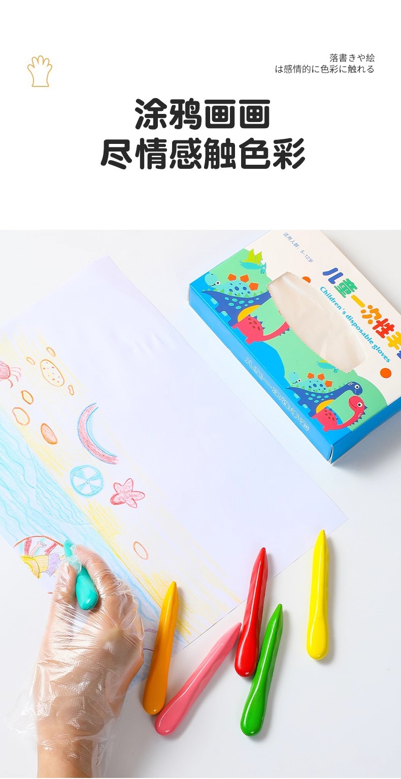 子供用使い捨て手袋厚手食品級飲食学生用子供手袋絵画peプラスチック透明手袋