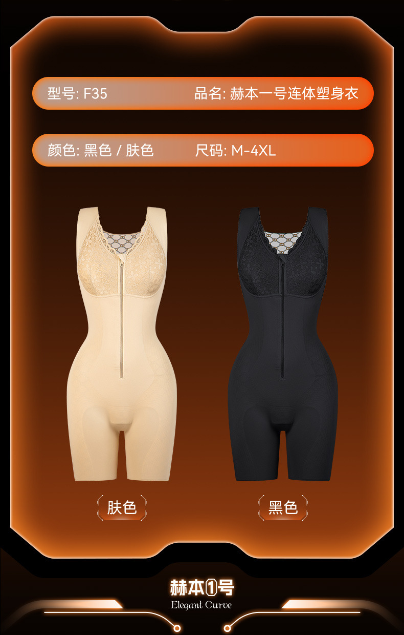 抖音【赫本一号】塑身衣强效双层收腹免穿文胸美体塑形拉链连体衣