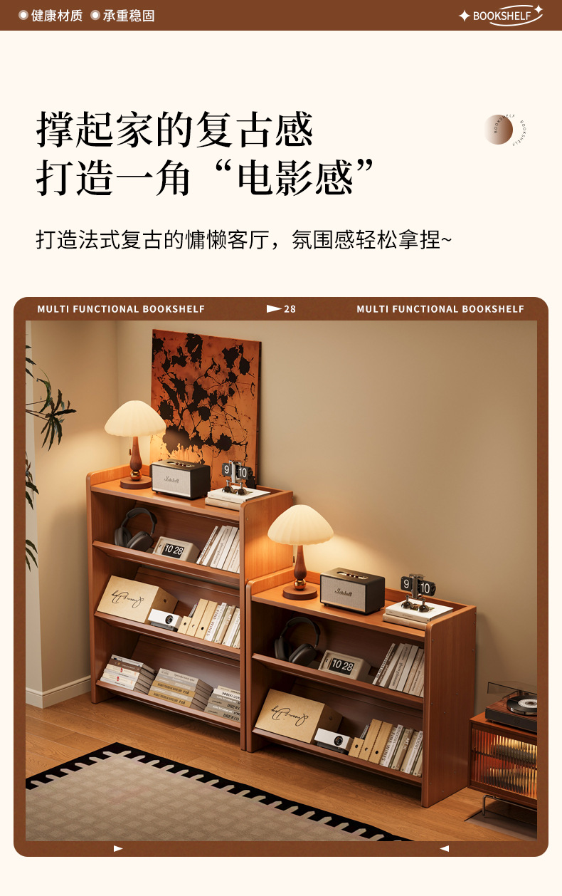 书架落地置物架一体靠墙窄柜子简易储物柜家用客厅书柜收纳展示架