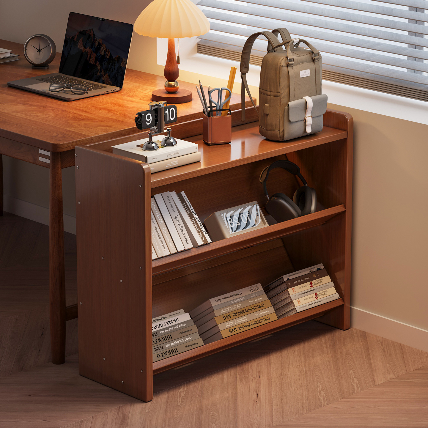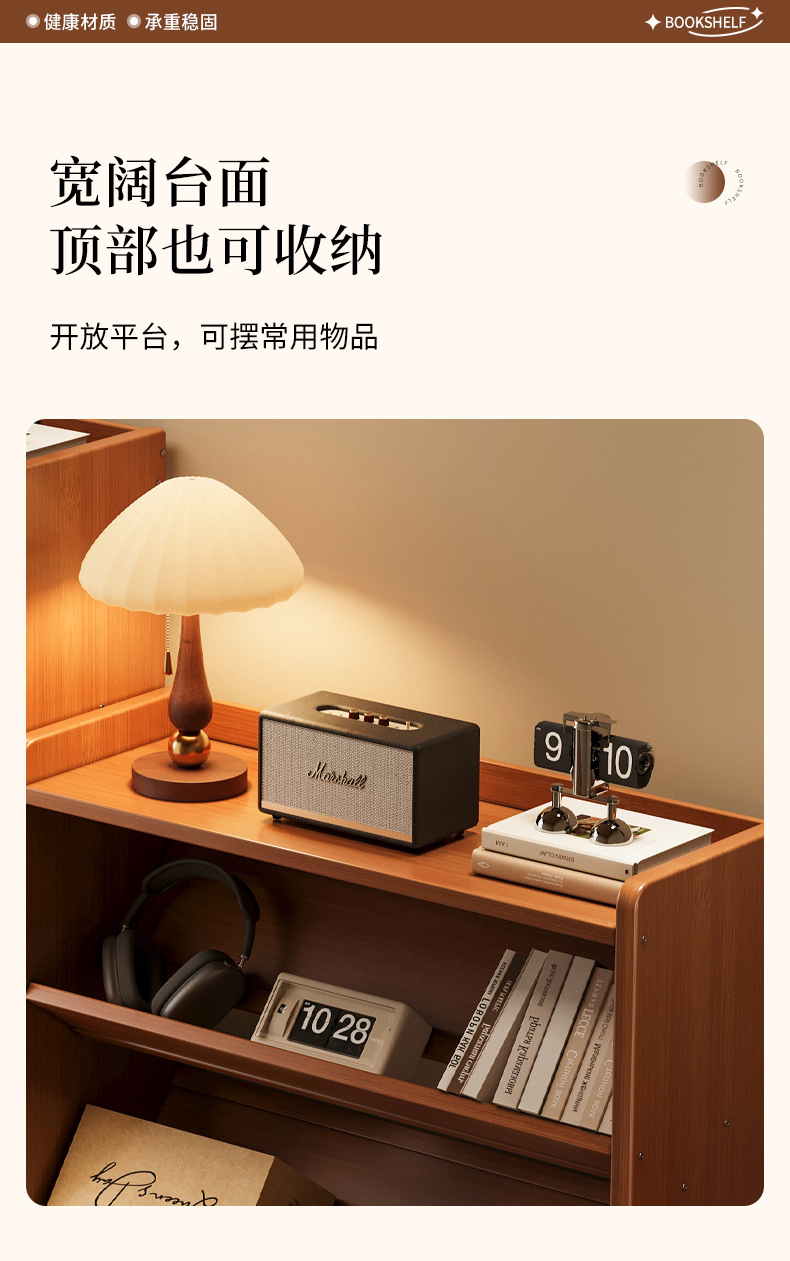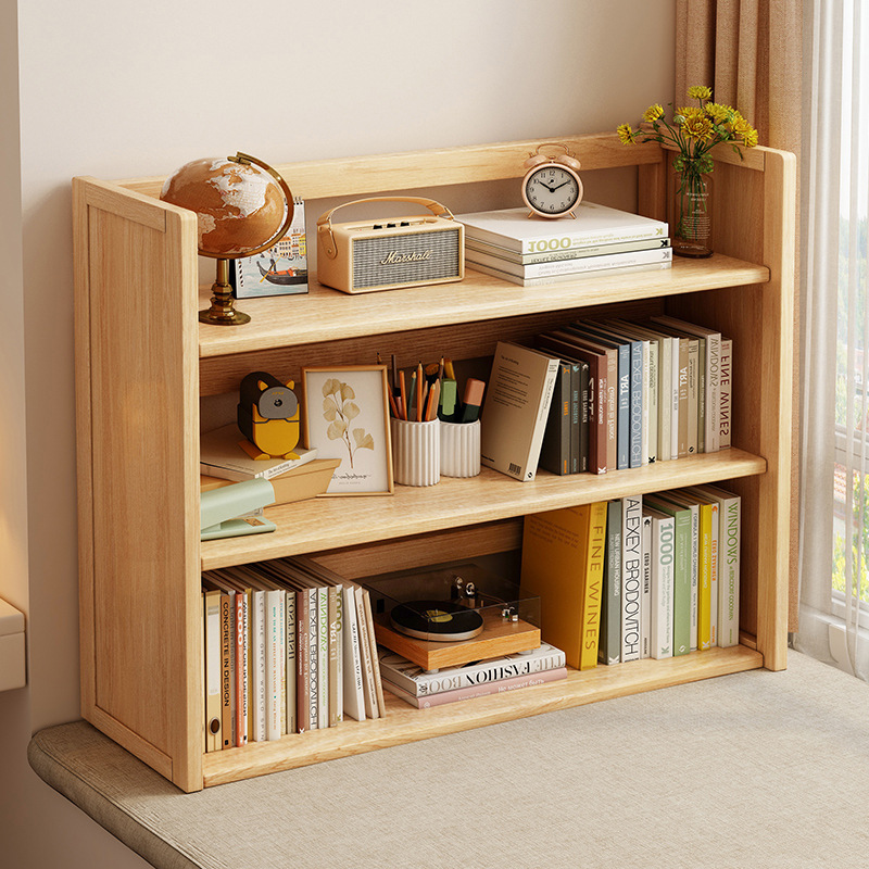 デスクトップ本棚実木帯引き出し棚オフィスステーション多層収納棚家庭用学生机整理棚
