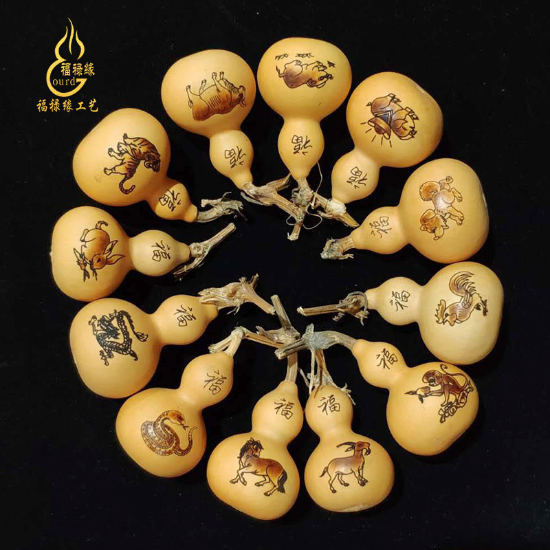 厂家直销美国手捻小葫芦带龙头烙画十二生肖挂件摆件工艺小礼品批