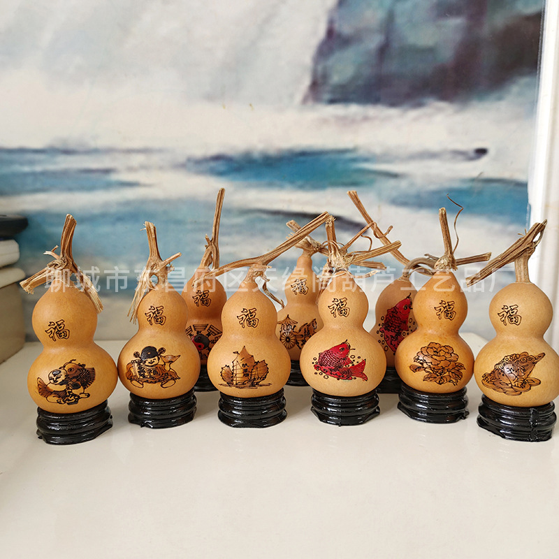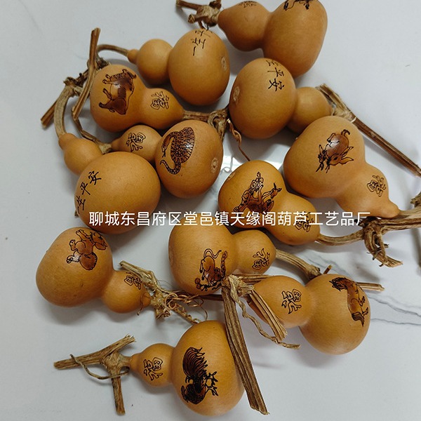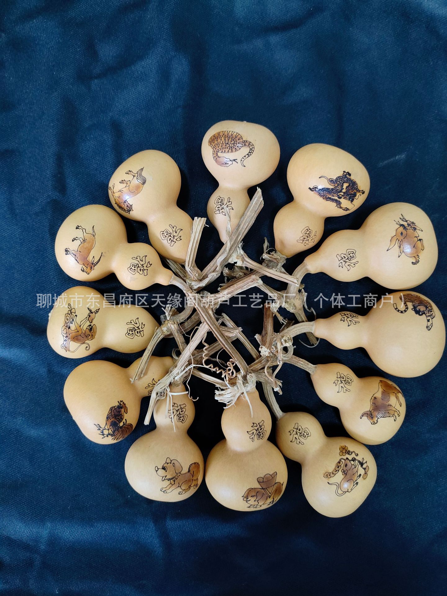 精選天然手撚小葫芦帯蛇口烙画十二生肖ストラップ置物工芸小プレゼント卸売り