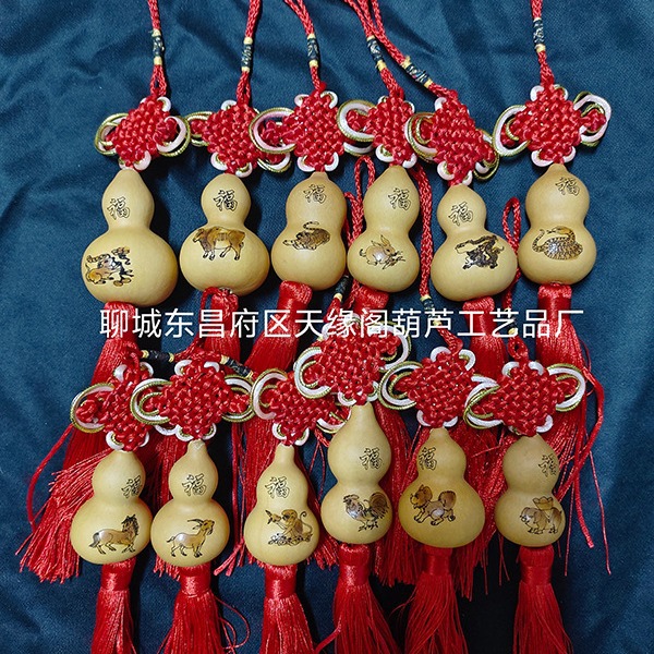 厂家直销美国手捻小葫芦烙画雕刻12生肖挂件高档中国结挂件批发