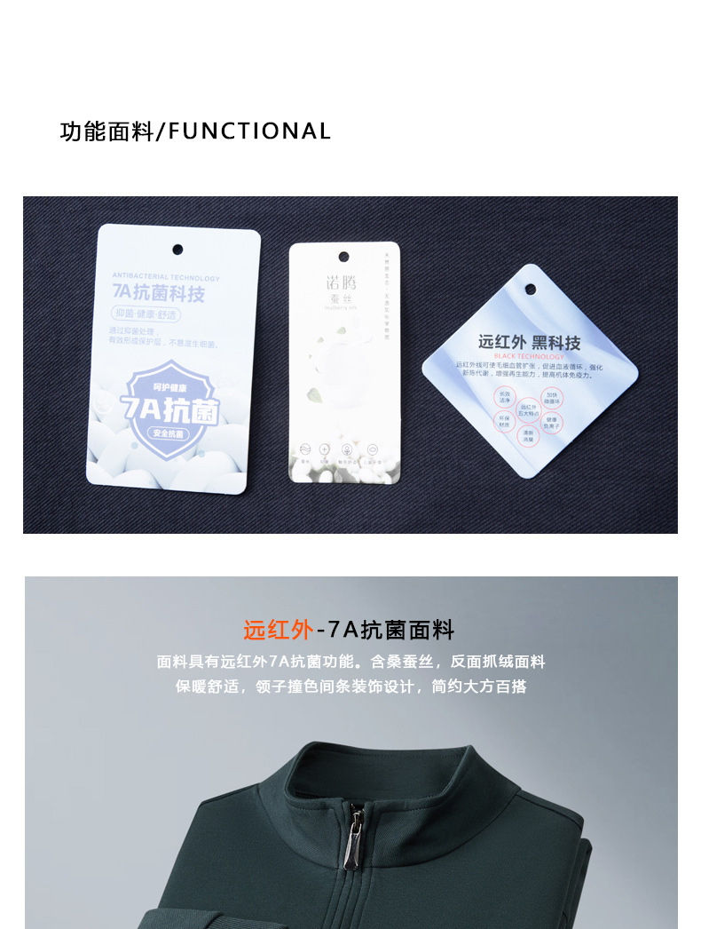 桑蚕丝拉链长袖卫衣男休闲远红外7A抗菌抓绒保暖纯色外穿加厚秋冬