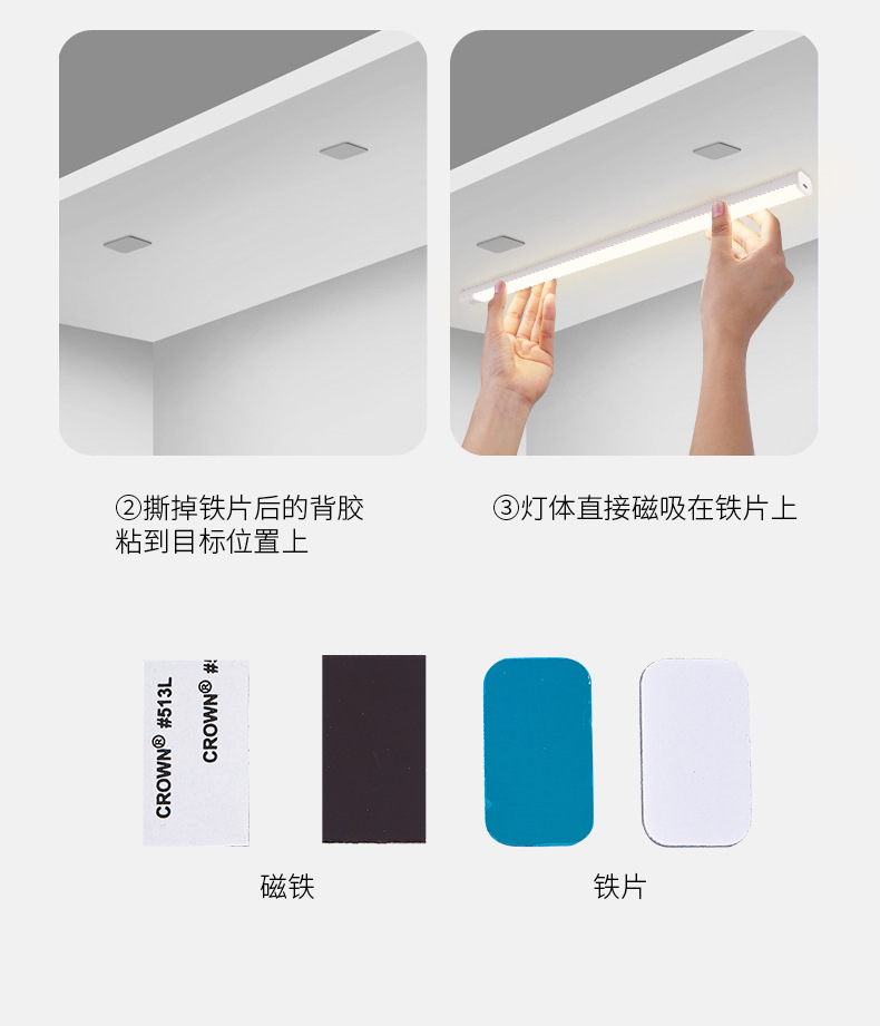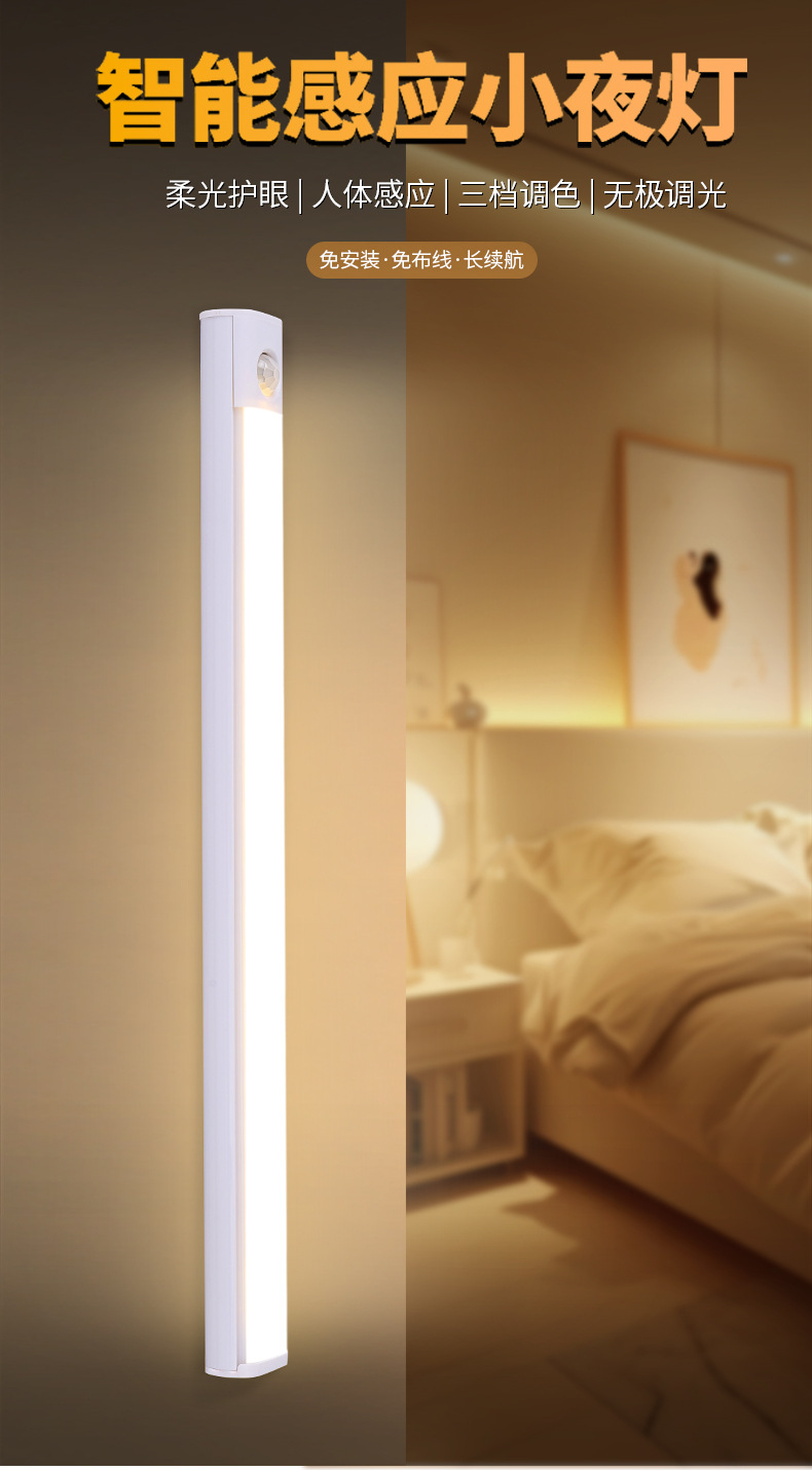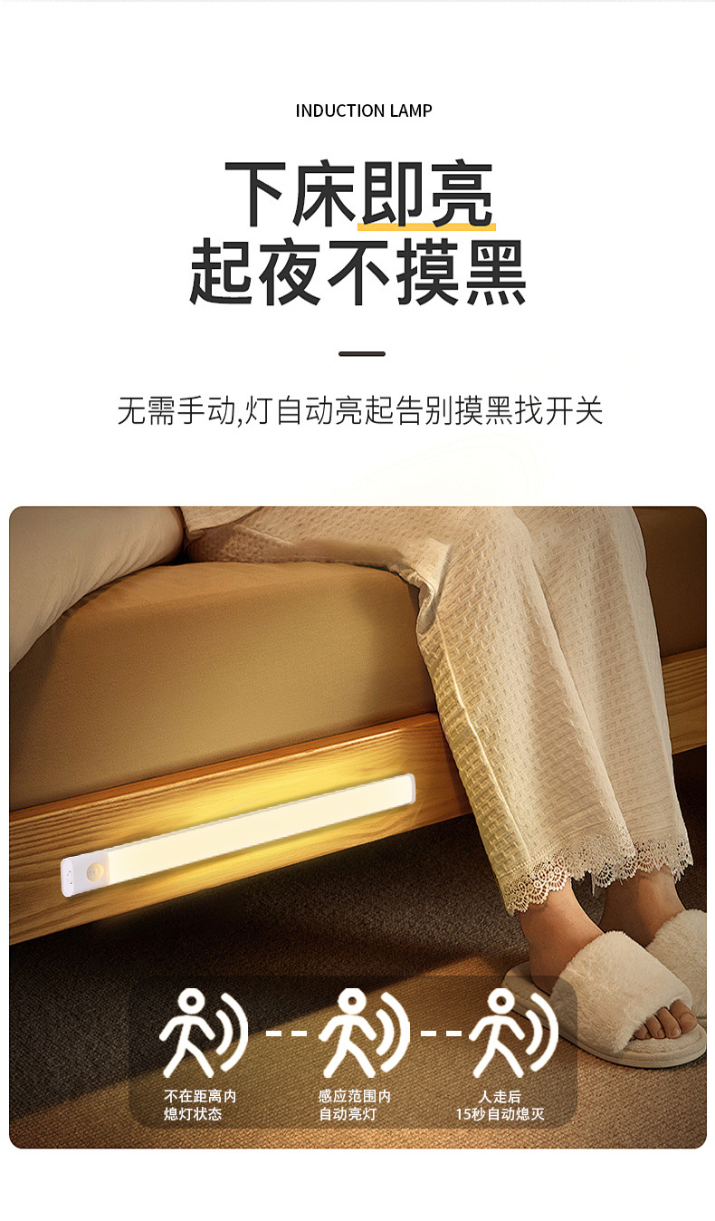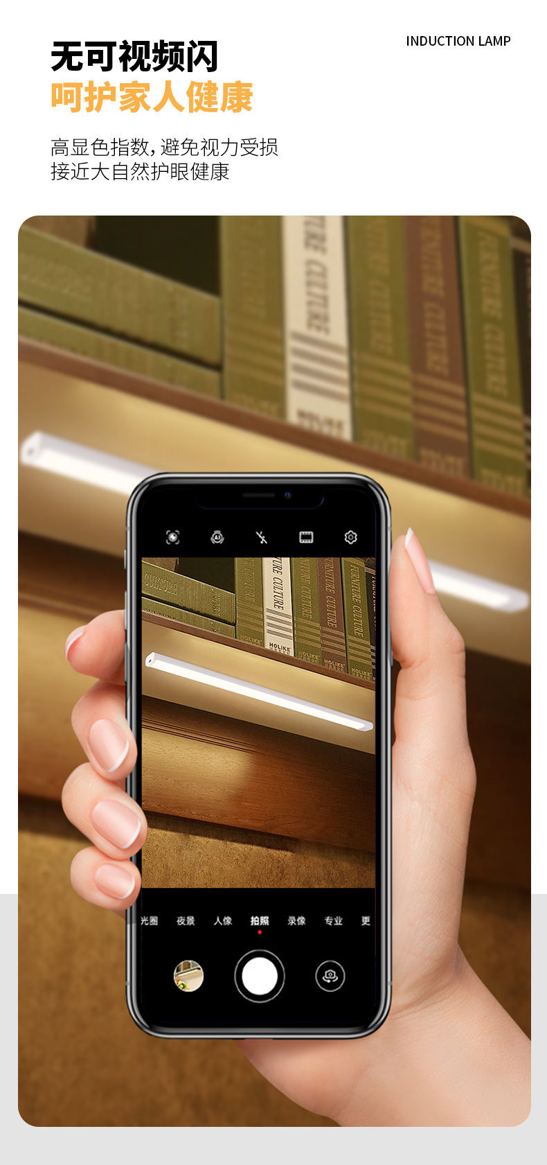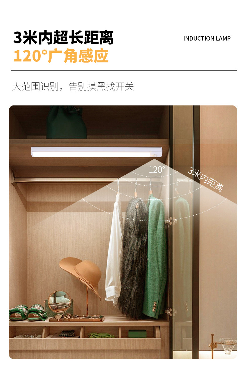 跨境超薄智能人体感应Led灯长条磁吸自粘带充电式酒柜衣橱柜灯条