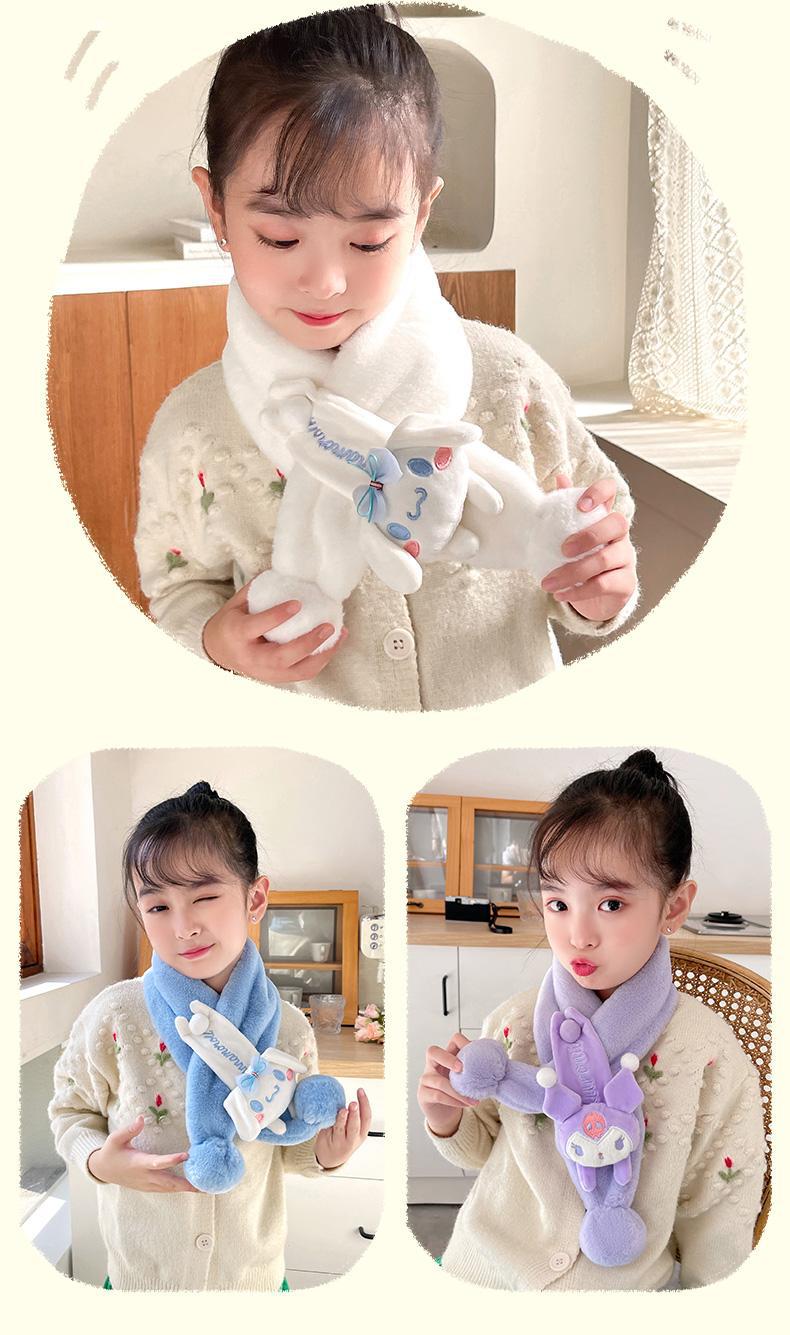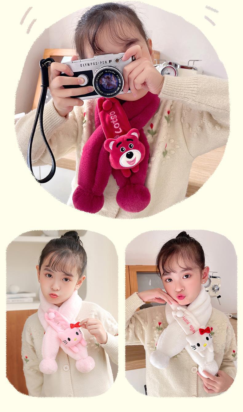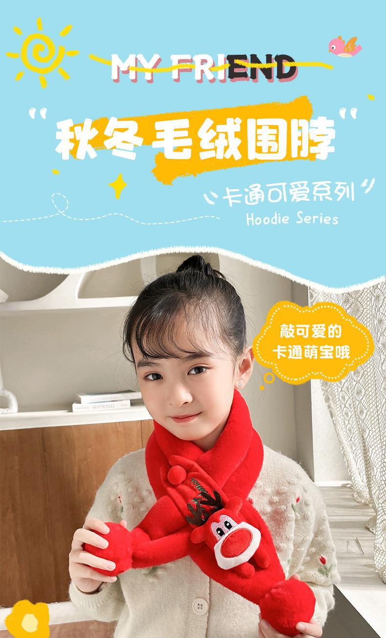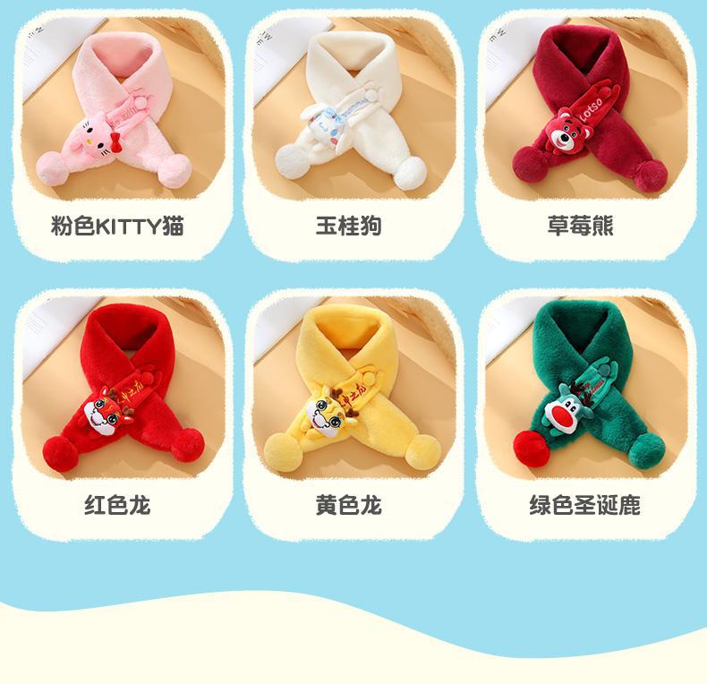 秋冬款网红交叉围脖儿童保暖男女学生宝宝仿兔毛绒护颈脖套可调节