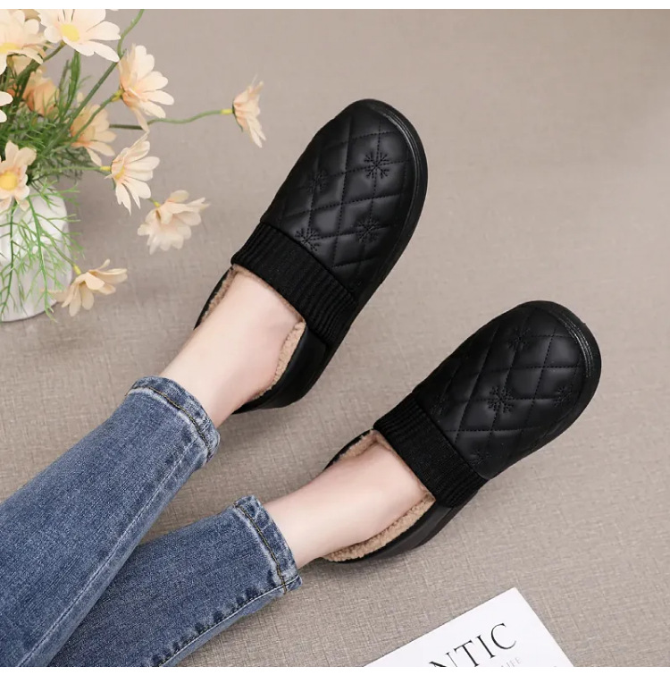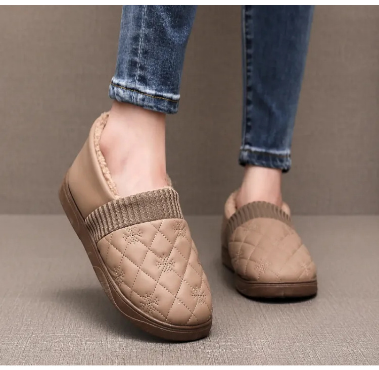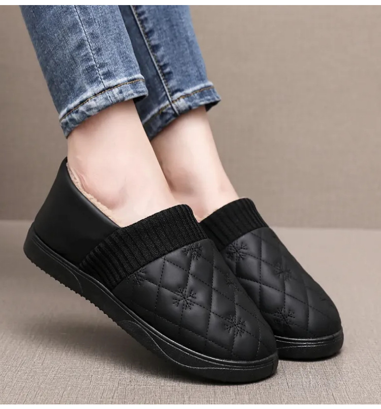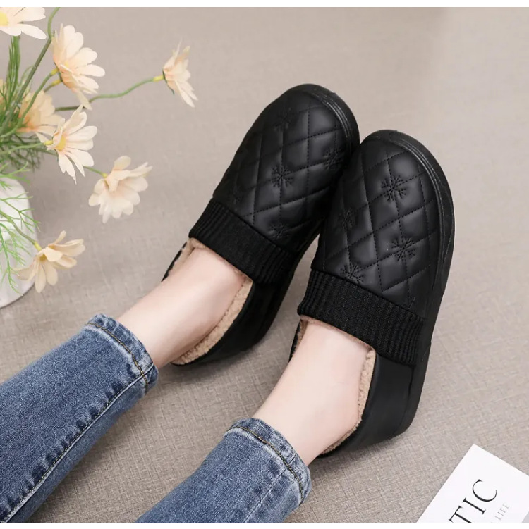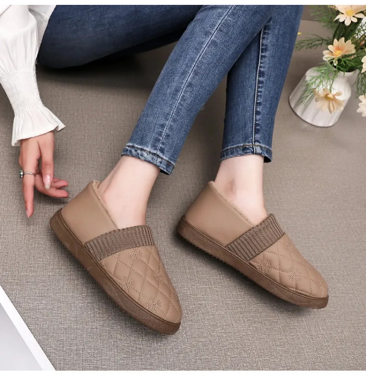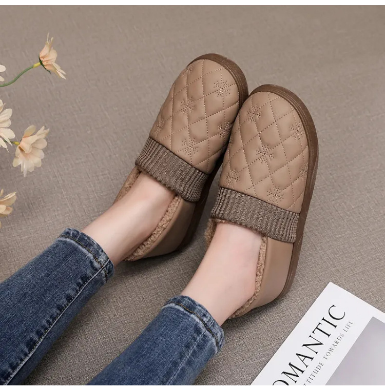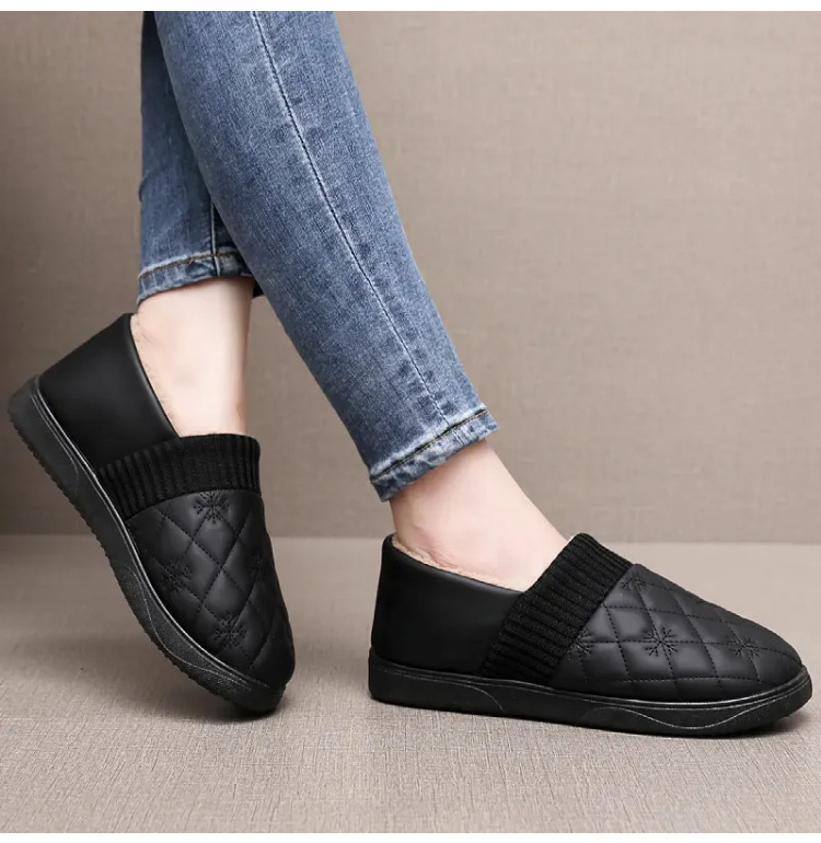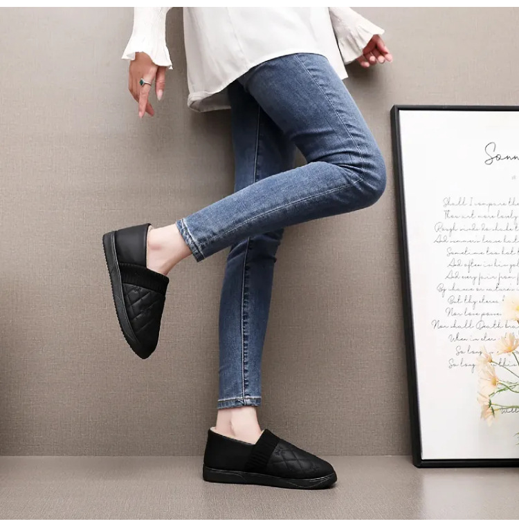 2025年冬用レディーススリッポンシューズ、裏起毛コットンシューズ、ネット人気豆豆シューズ、防水保温、フラットソフトソール、楽ちんシューズ
