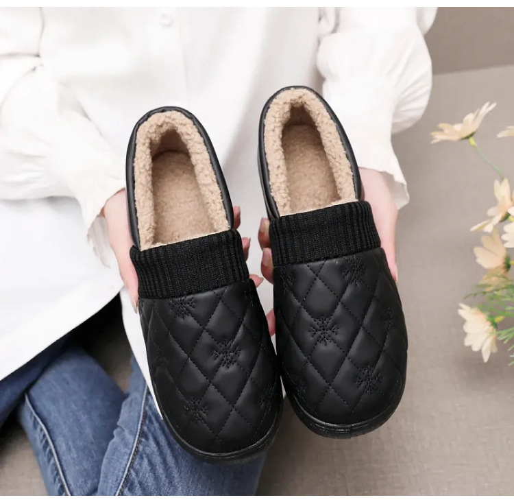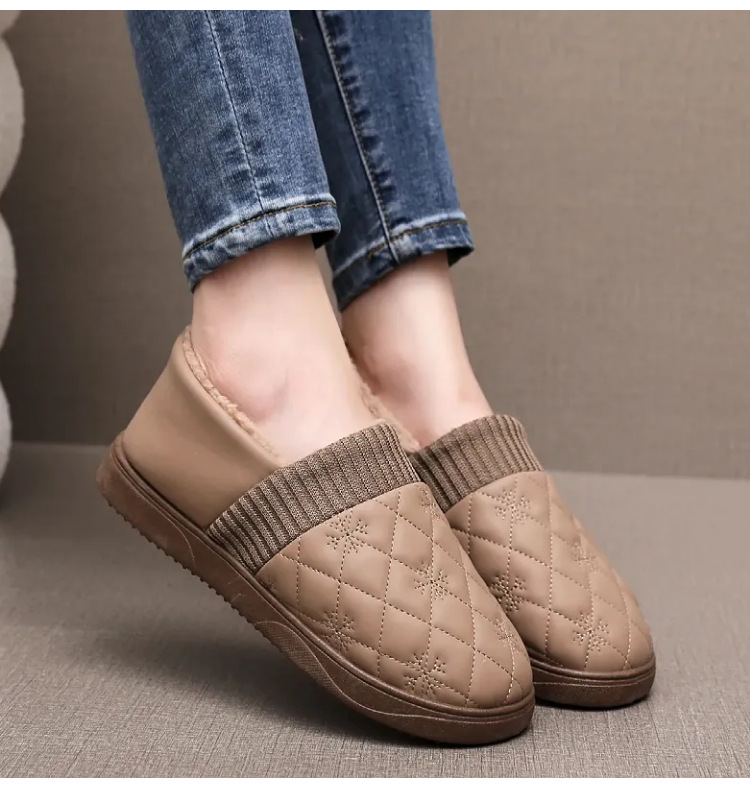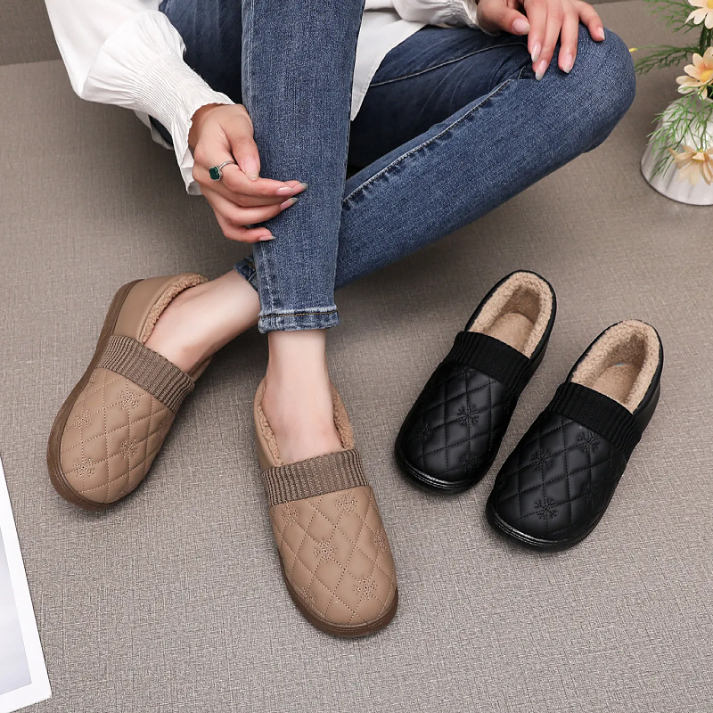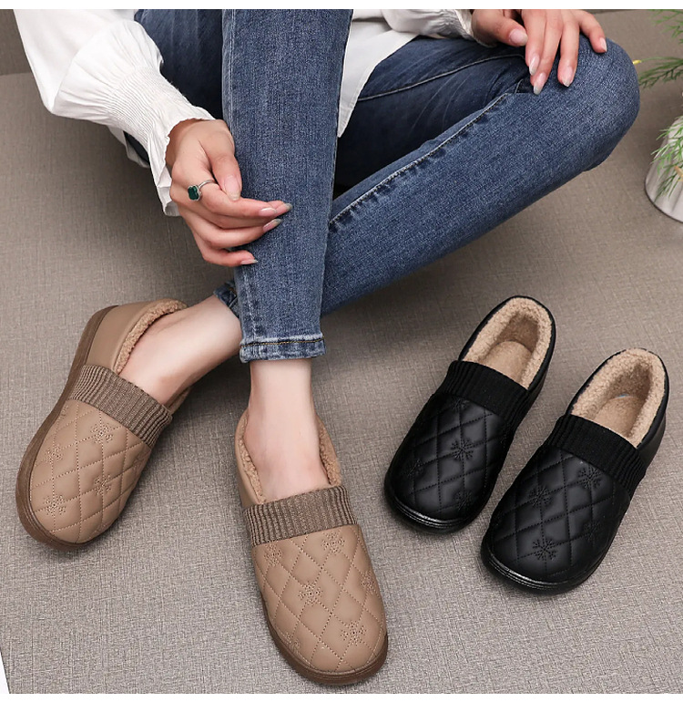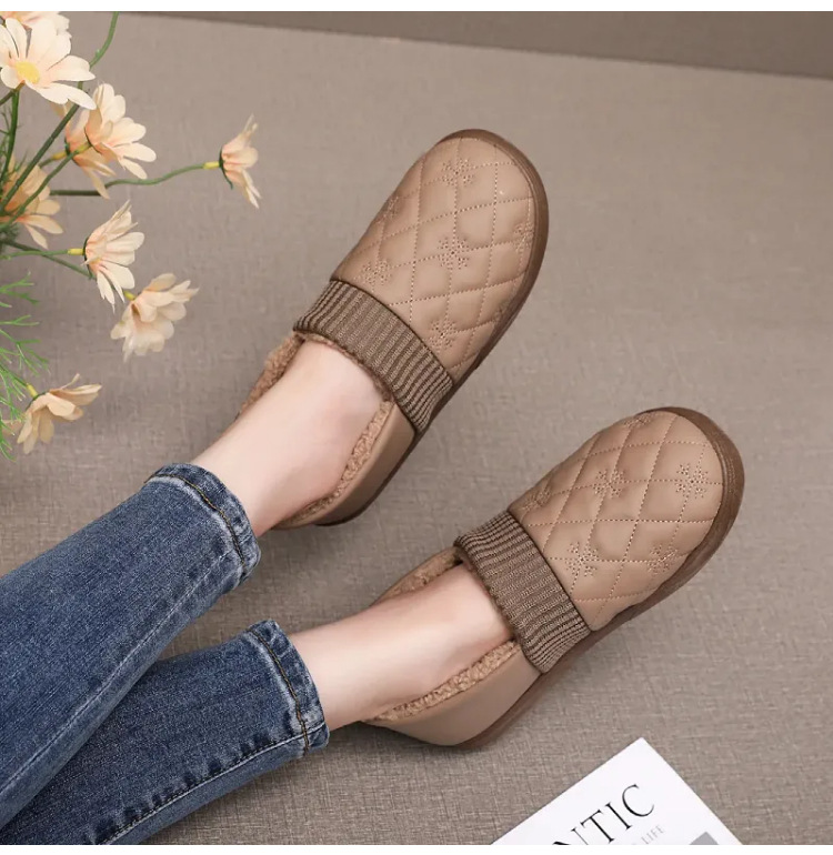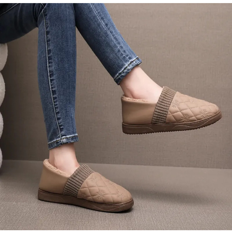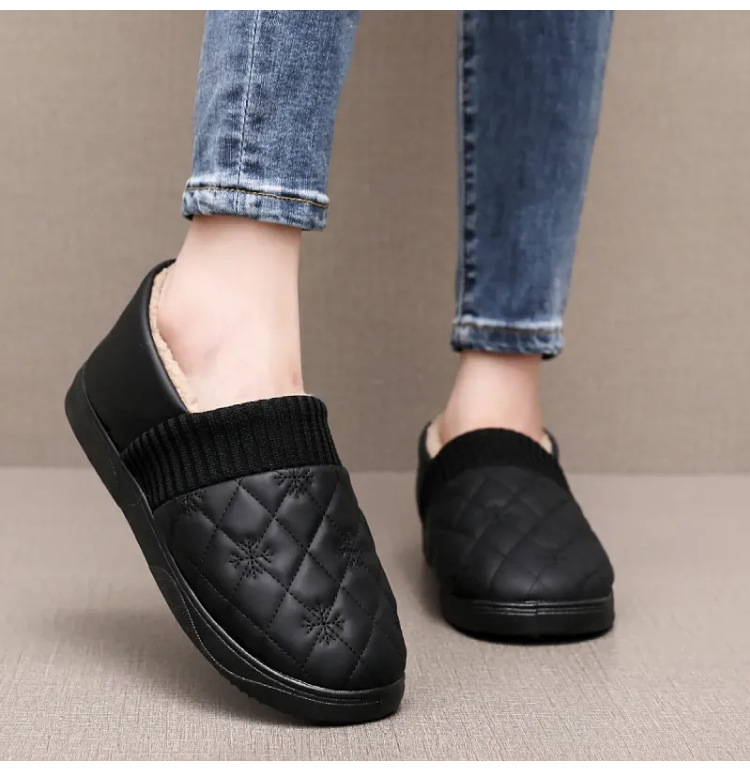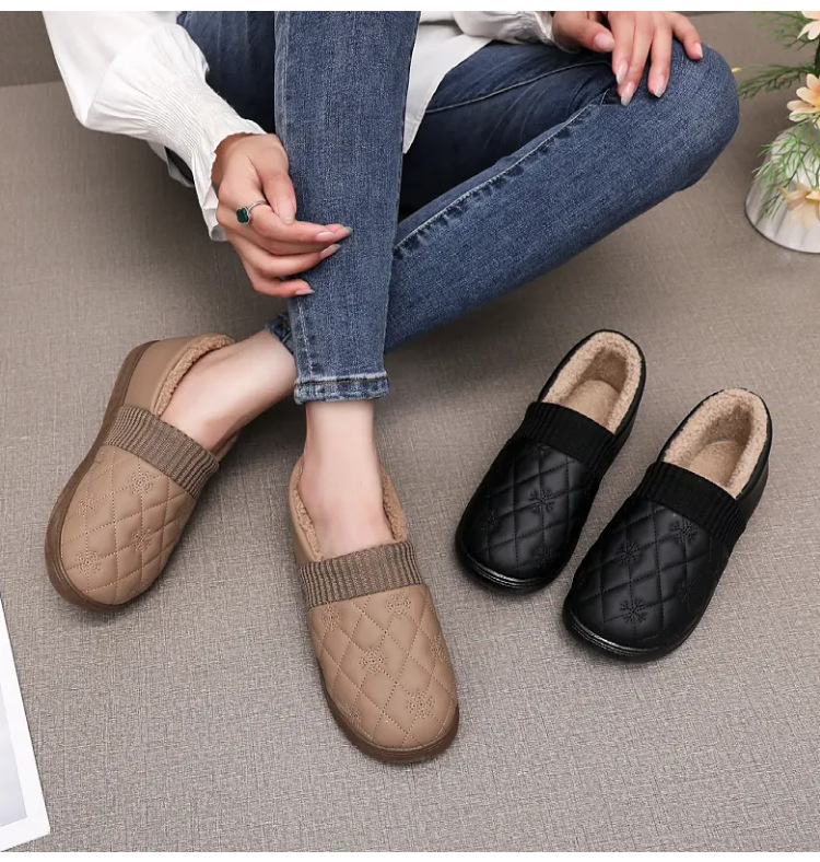 2025年冬用レディーススリッポンシューズ、裏起毛コットンシューズ、ネット人気豆豆シューズ、防水保温、フラットソフトソール、楽ちんシューズ