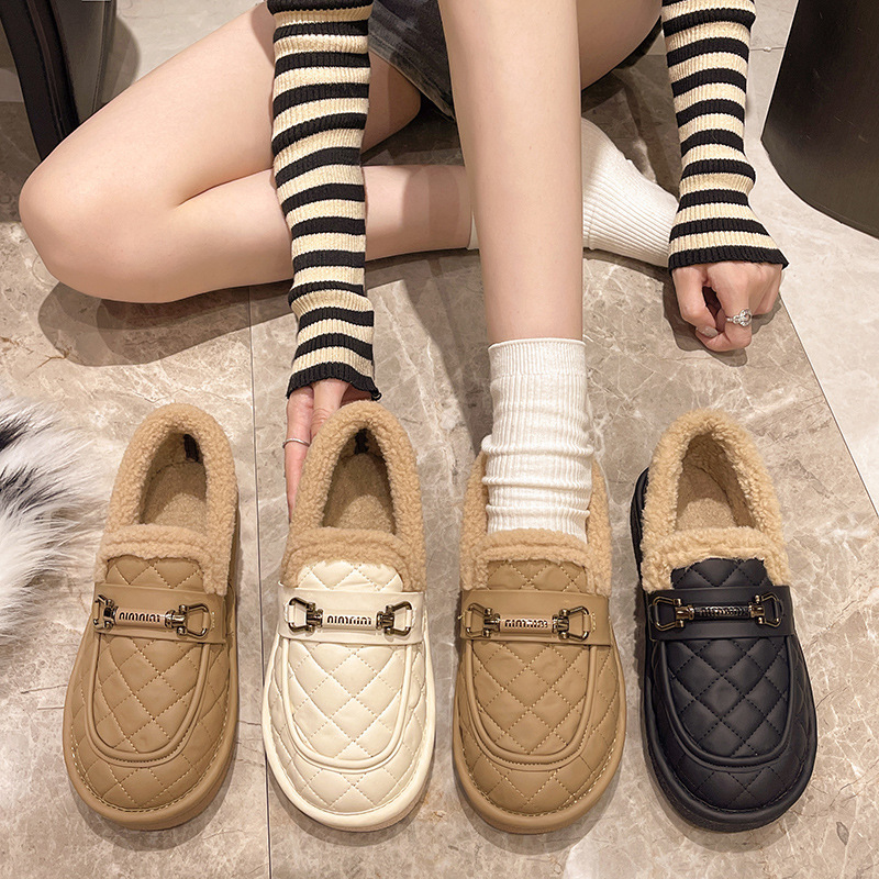 小香风面包鞋女冬季加绒保暖加厚棉鞋女时尚防滑一脚蹬低帮雪地靴