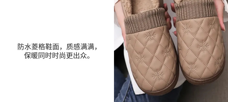 冬季新款棉鞋女防水防寒韩版毛毛鞋一脚蹬软底防滑加绒加厚乐福鞋