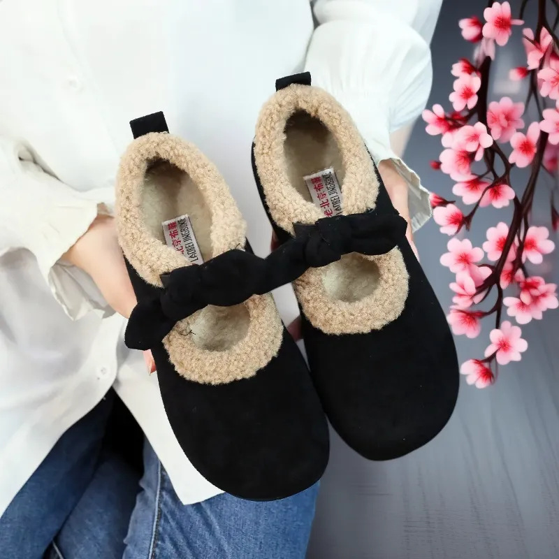 冬用綿スリッパ、女性用老北京布靴、室内用、裏起毛、暖かい、ローカット、産後用、快適で多用途