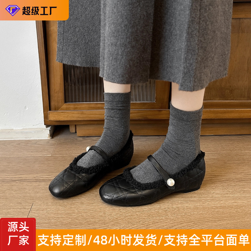 秋冬新款隐形内增高加绒玛丽珍鞋休闲百搭女鞋软底一脚蹬懒人单鞋