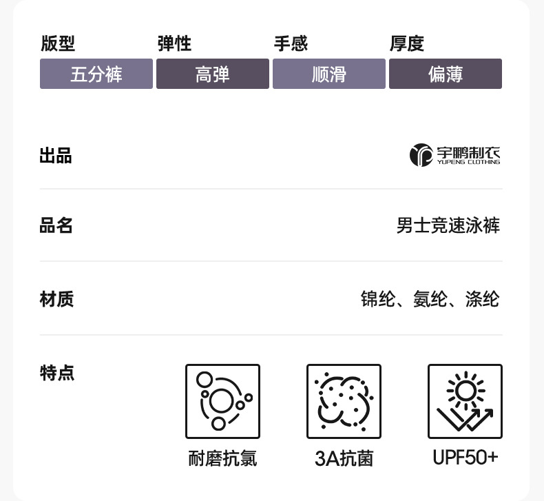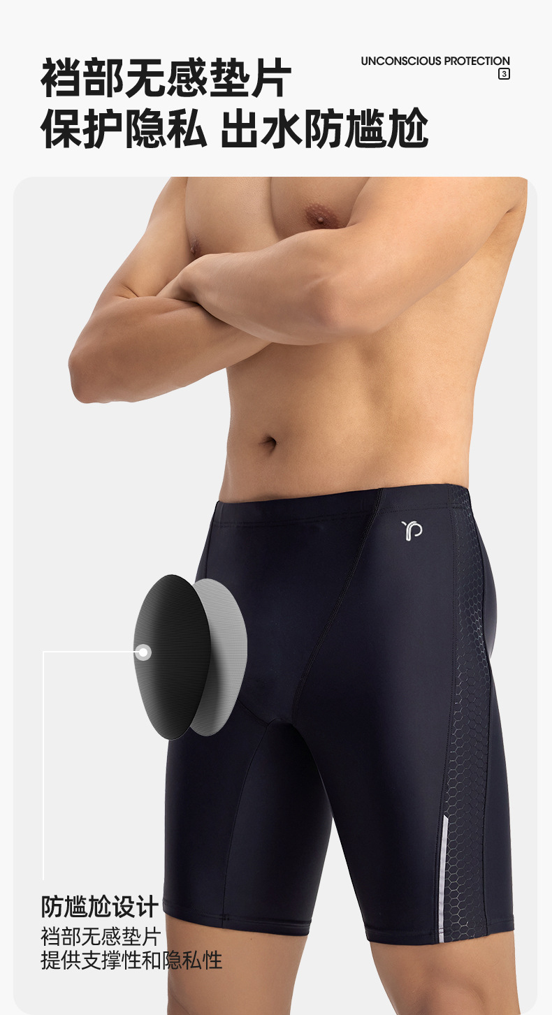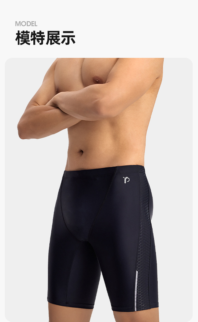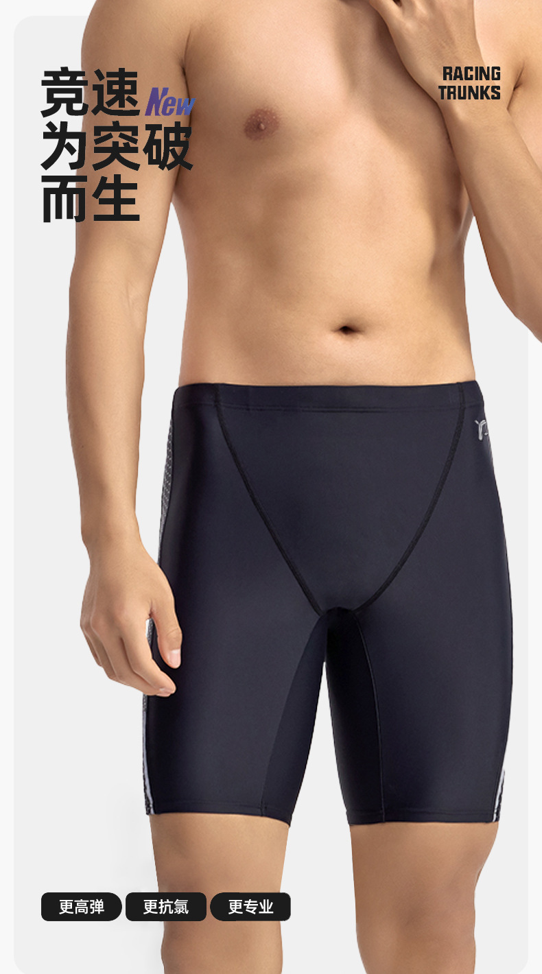 新款男士游泳裤防尴尬专业游泳馆训练平角速干泳池竞速五分泳裤