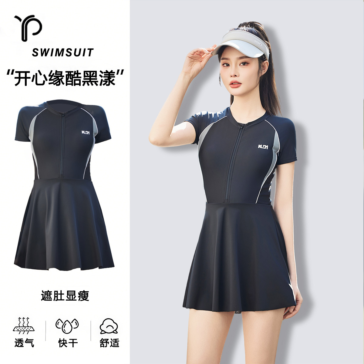 Xianheyuan 水着女性用、少し太った、肉感をカバーし、スリムに見えるワンピーススカート、学生スポーツ、コンサバティブプール、速乾性温泉水着