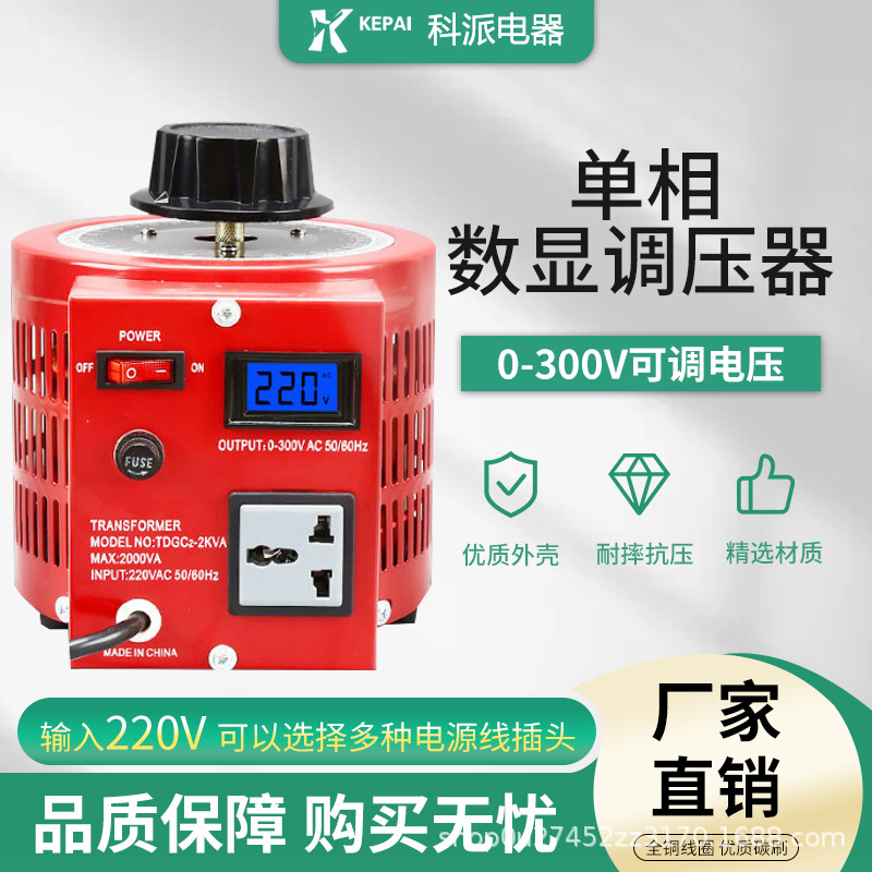 科派絶縁電圧調整器 3000W 単相交流220V デジタル表示 0-300V/500V 調整可能トランス 3KW