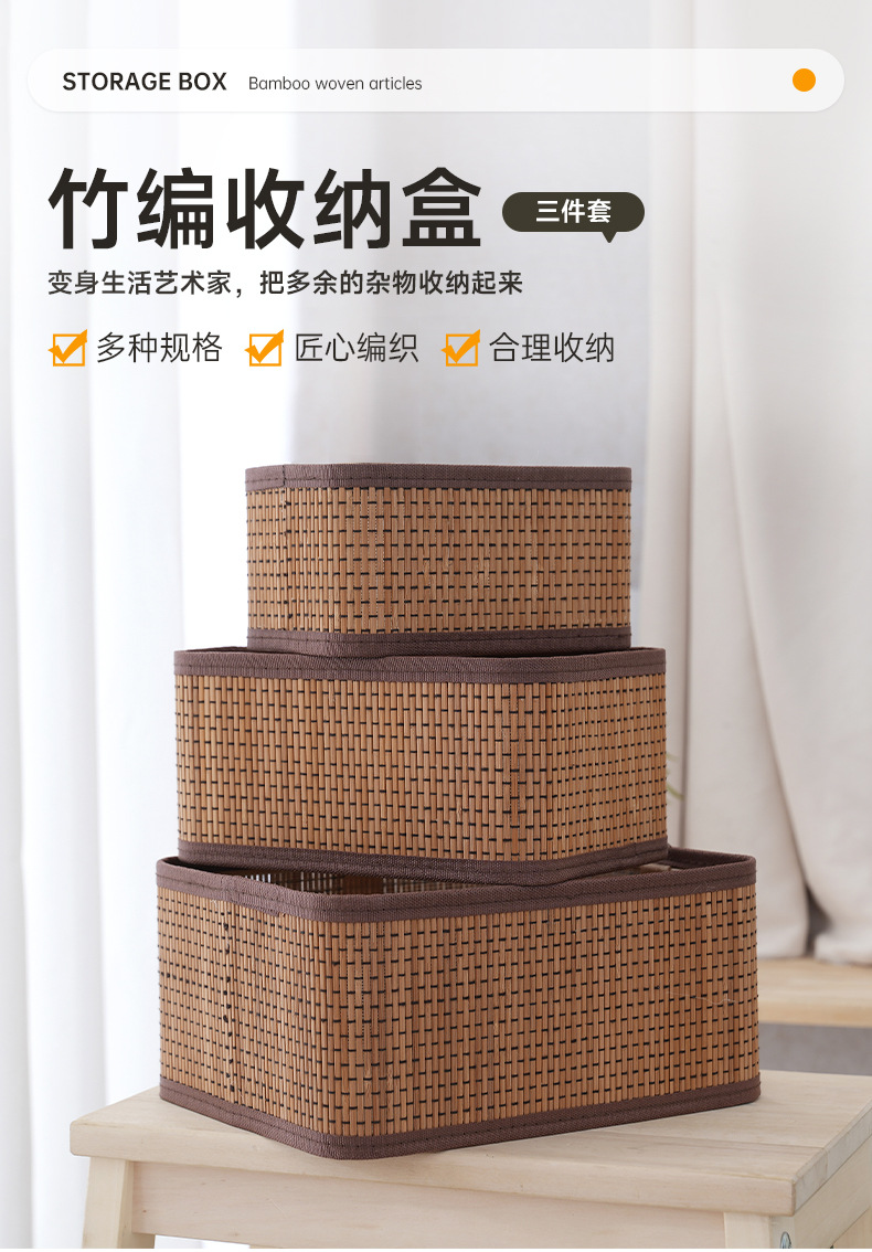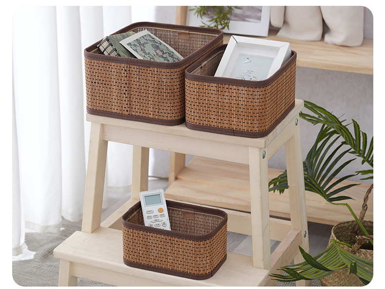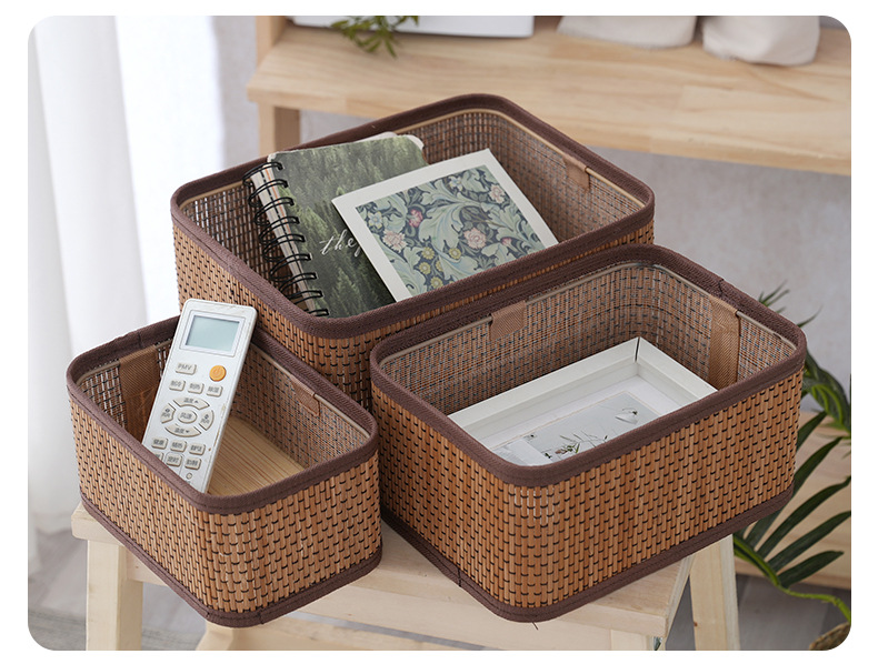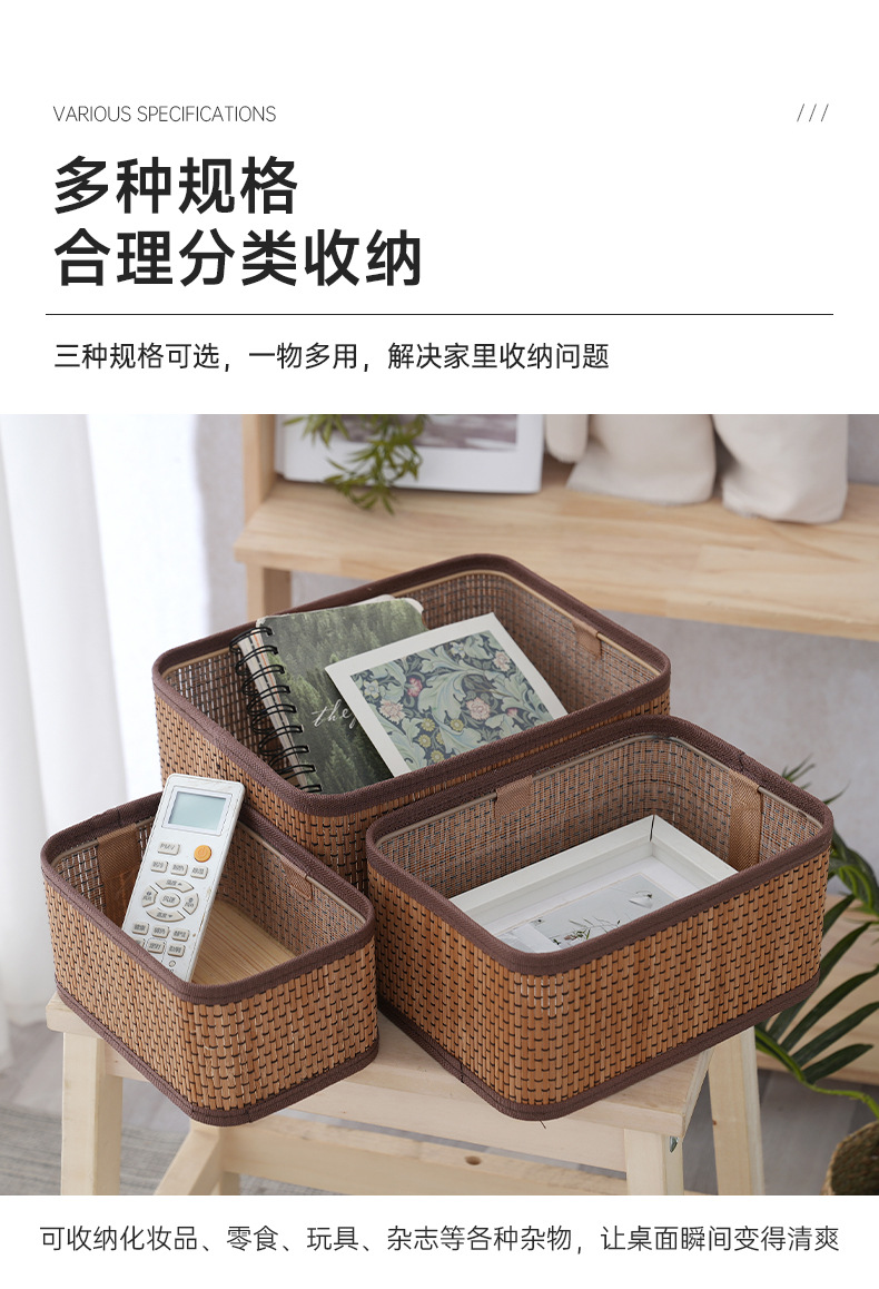桌面收纳盒杂物收纳筐客厅钥匙遥控器编织筐化妆品储物盒仿藤编筐