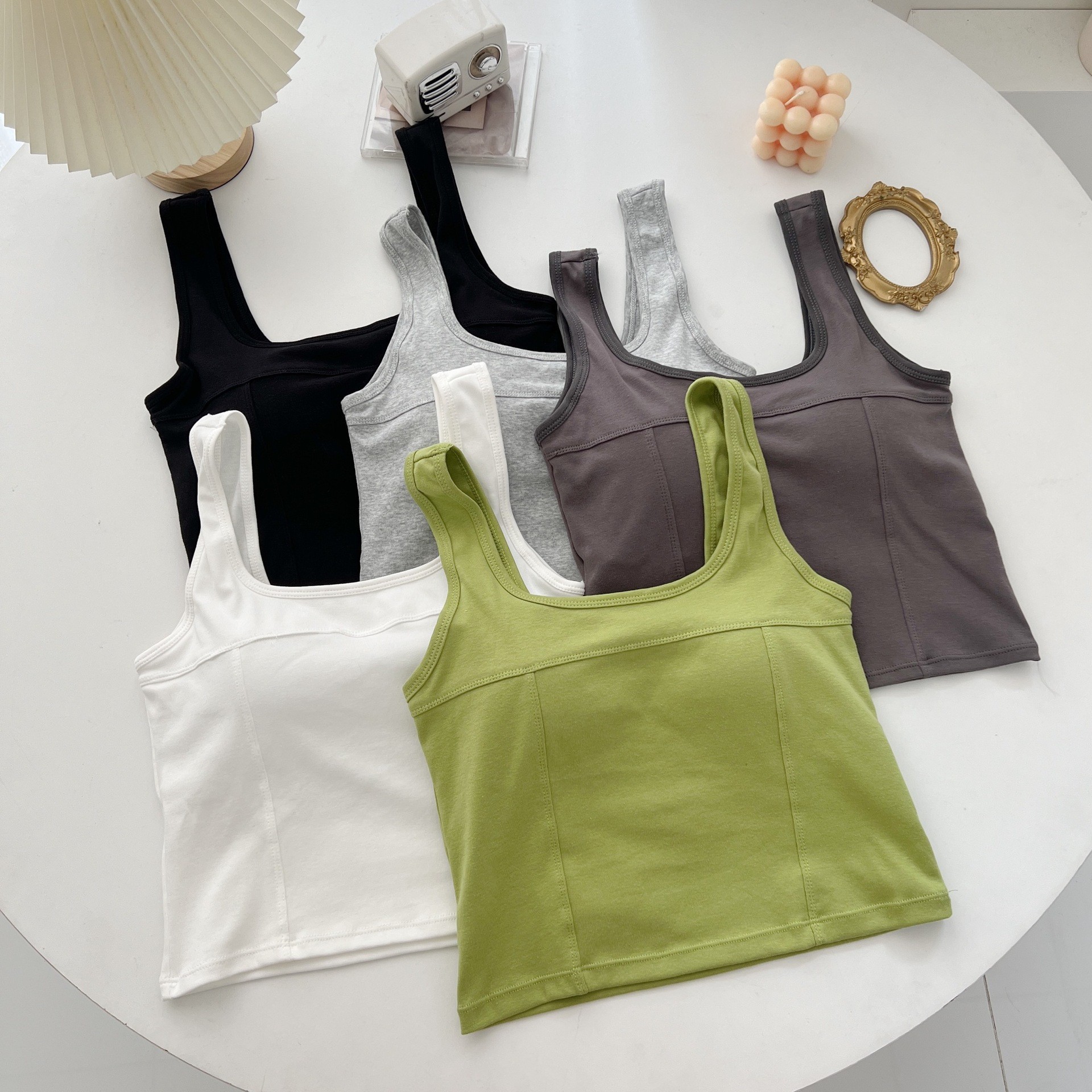 ピュアセクシースイート&スパイシーデザインの女性用プリーツキャミソール、胸パッド付き、ワンカップ、インナーとアウター、女性用美しいバックトップ