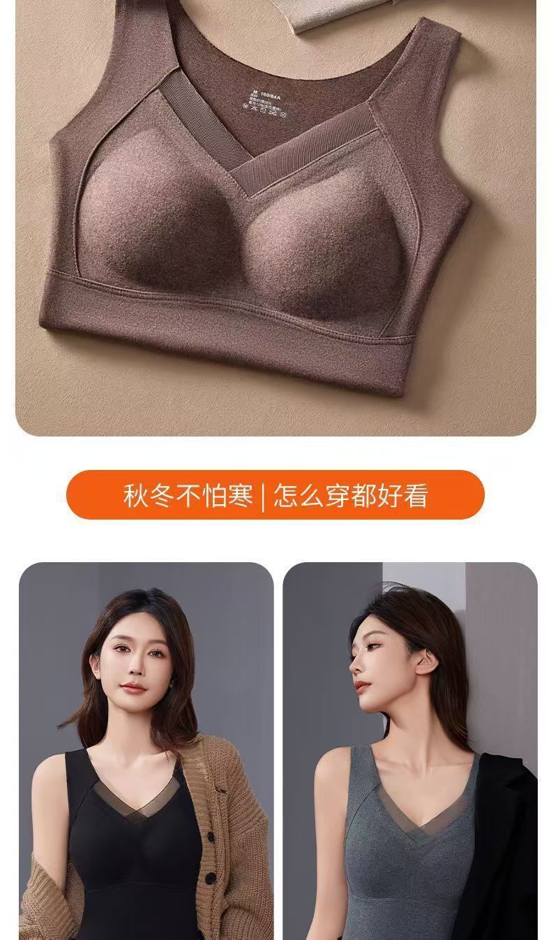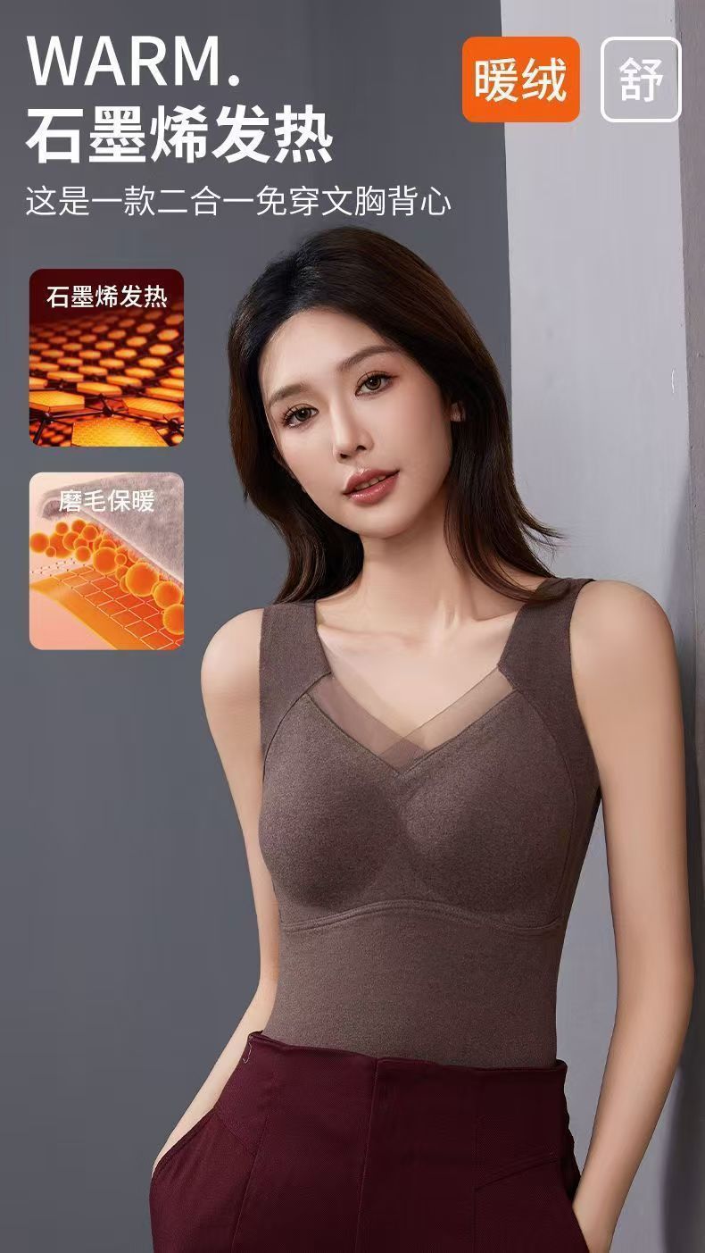 秋冬保温グラフェン一体式ベスト女性固定カップとベルベットの厚い底付き馬甲の無痕下着女性
