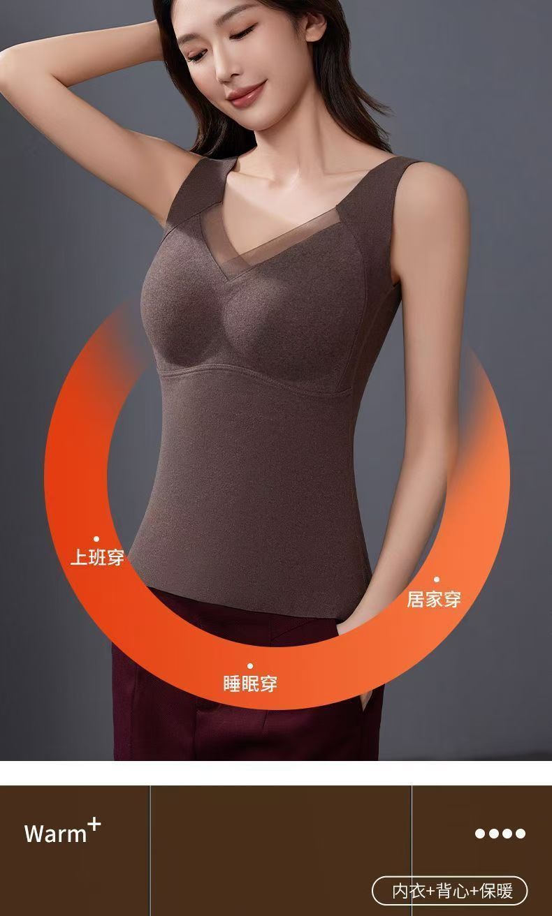 德绒国风提拉上托保暖背心带胸垫免穿文胸发热加绒加厚磨毛打底衫