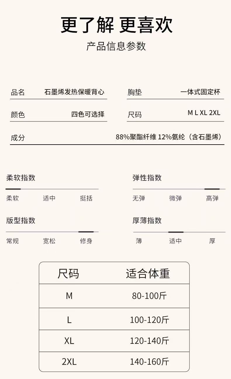8803グラフェンベスト3d立体裁断発熱保温ストラップ女性固定カップ底上着は下着を着ないでください