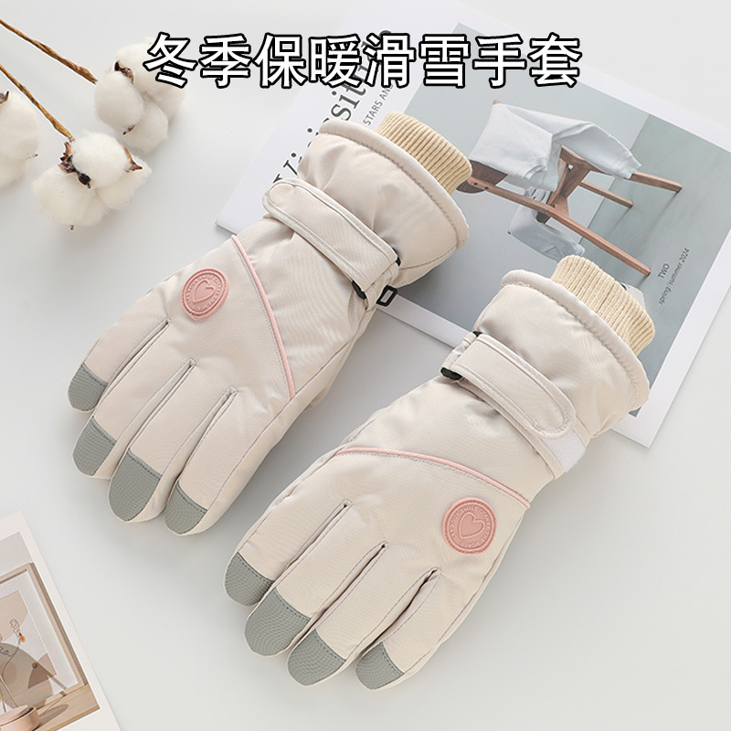 冬季保暖滑雪手套女士加绒加厚防风防水触屏骑行户外运动保暖手套