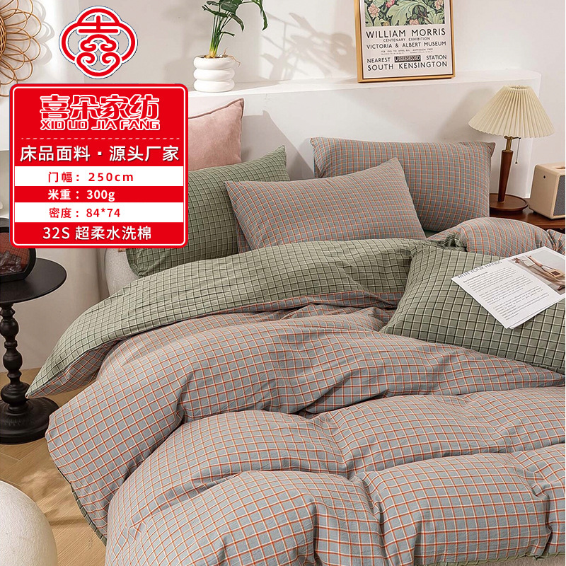 ウォッシュドコットン枕カバー生地寝具チェック柄綿夏薄い家庭用生産地卸売