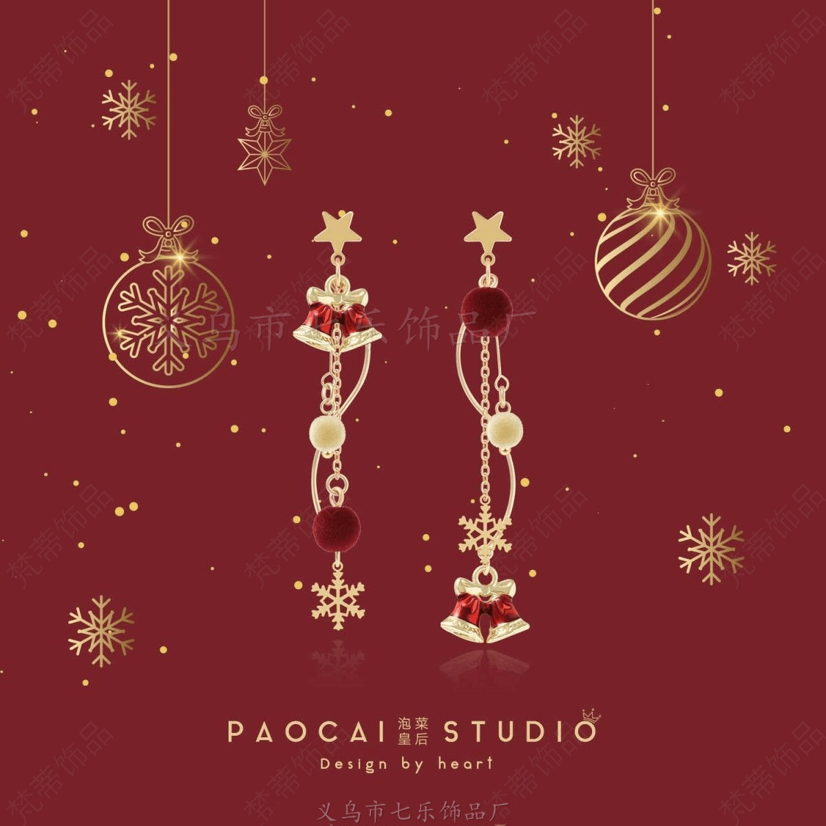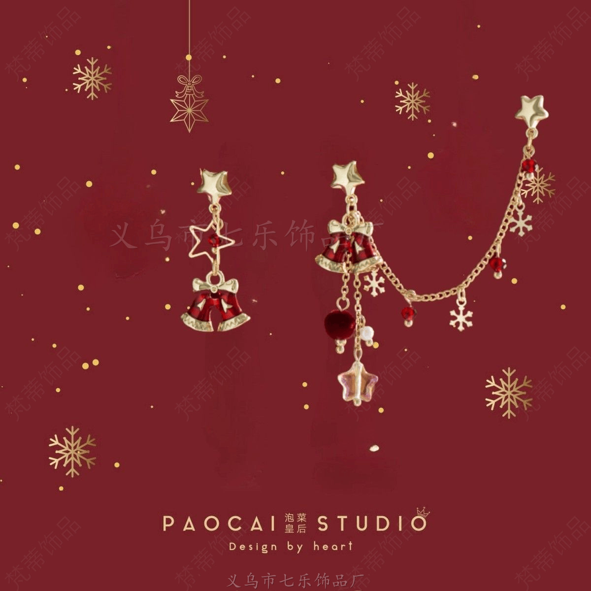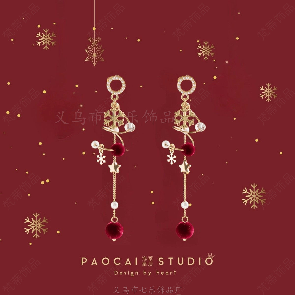 秋冬不对称冰蓝雪花流苏耳环小众设计高级感气质新款耳钉耳夹