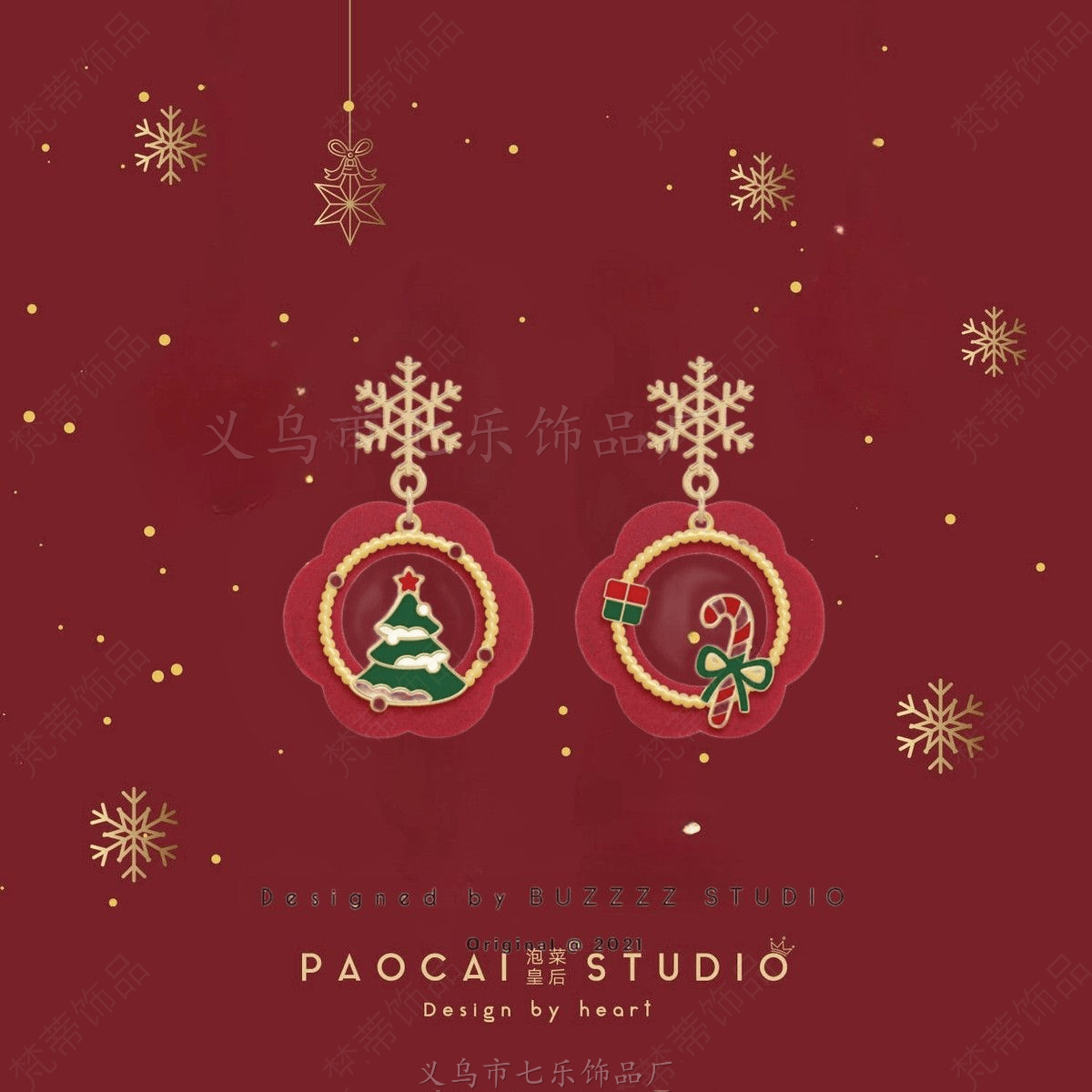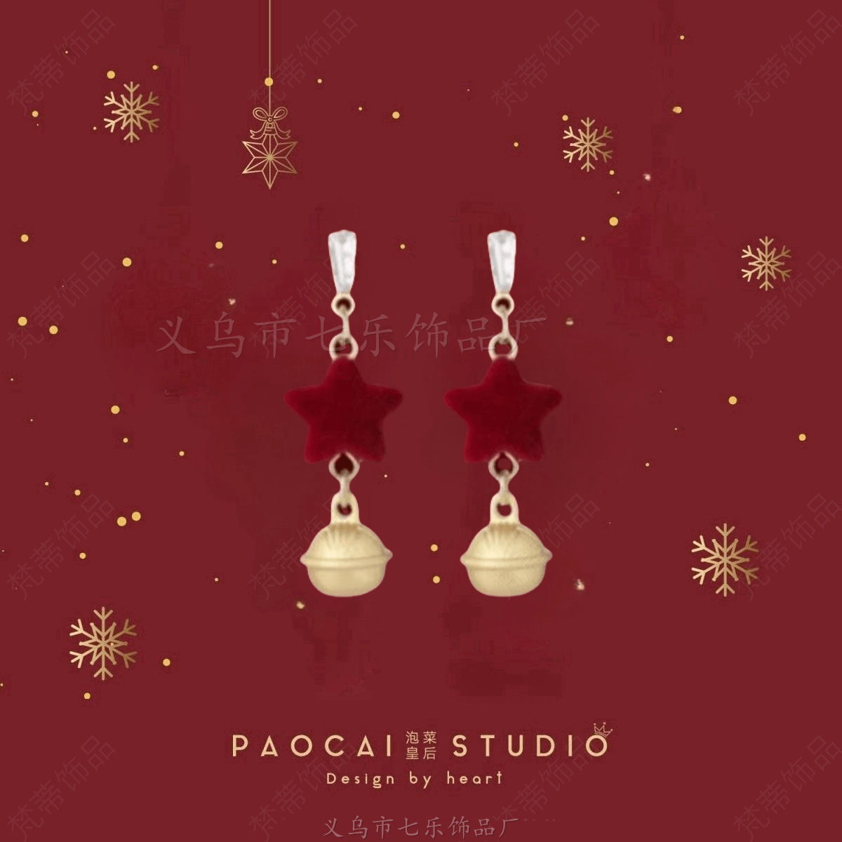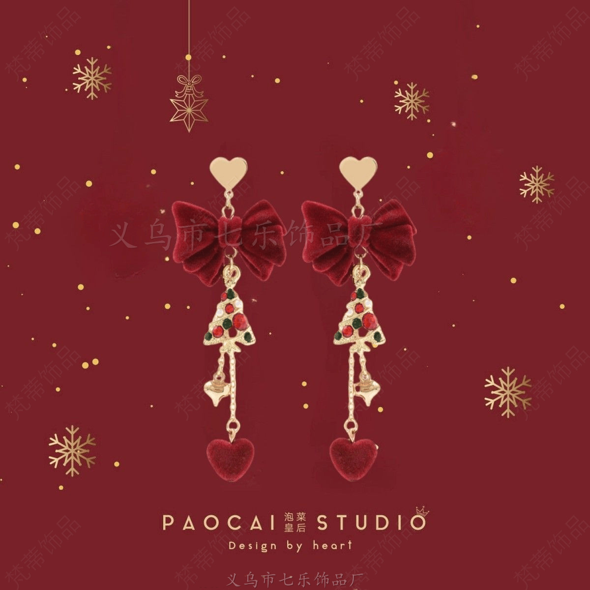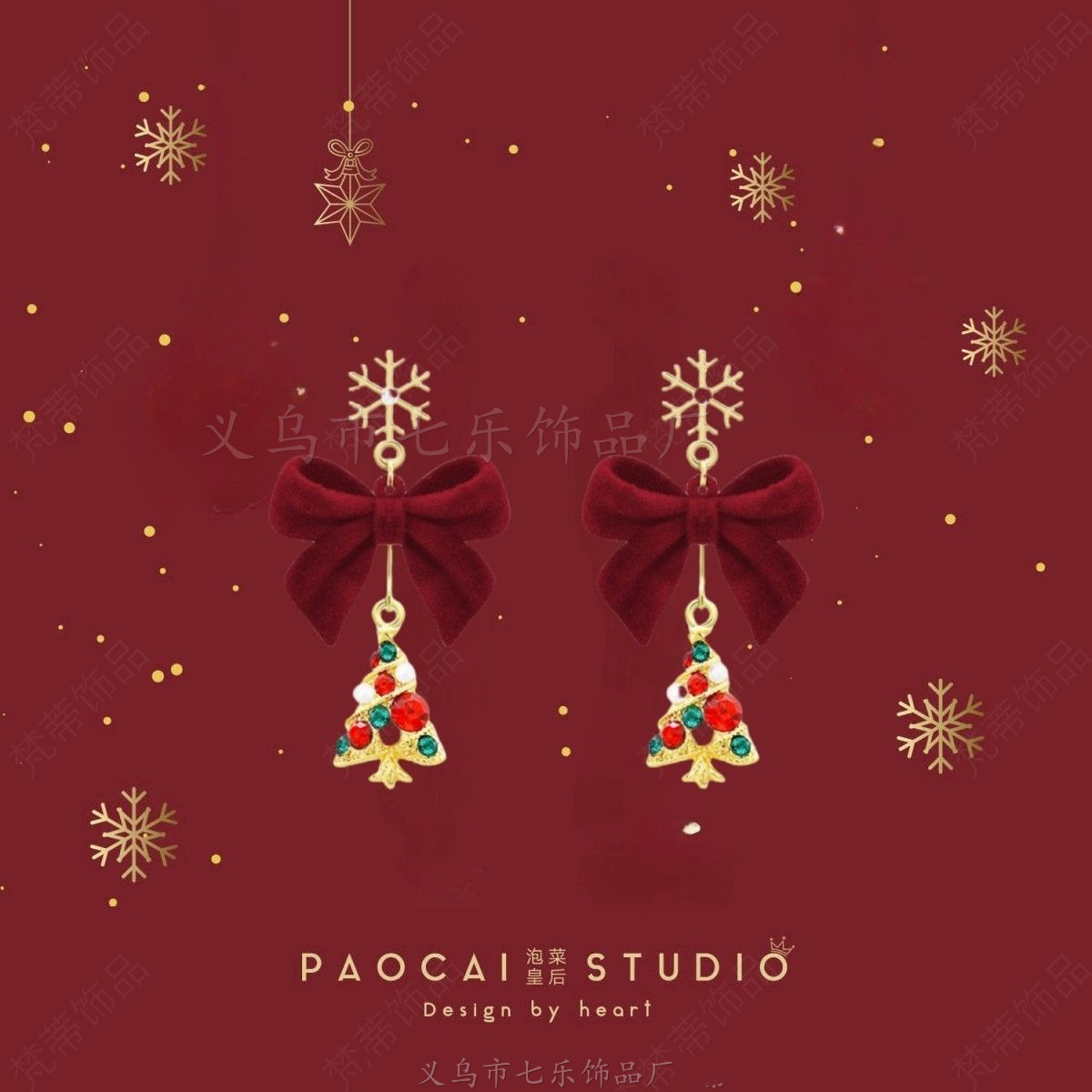 红色新年植绒蝴蝶结毛球耳钉小众高级感耳饰过年结婚小众高级耳环