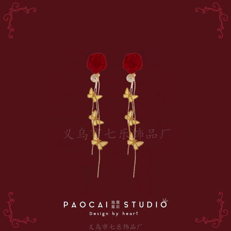 血域蝶 ~ 清冷感赤ジルコン蝶ピアス新ファッション高級感ピアス仙子ピアス