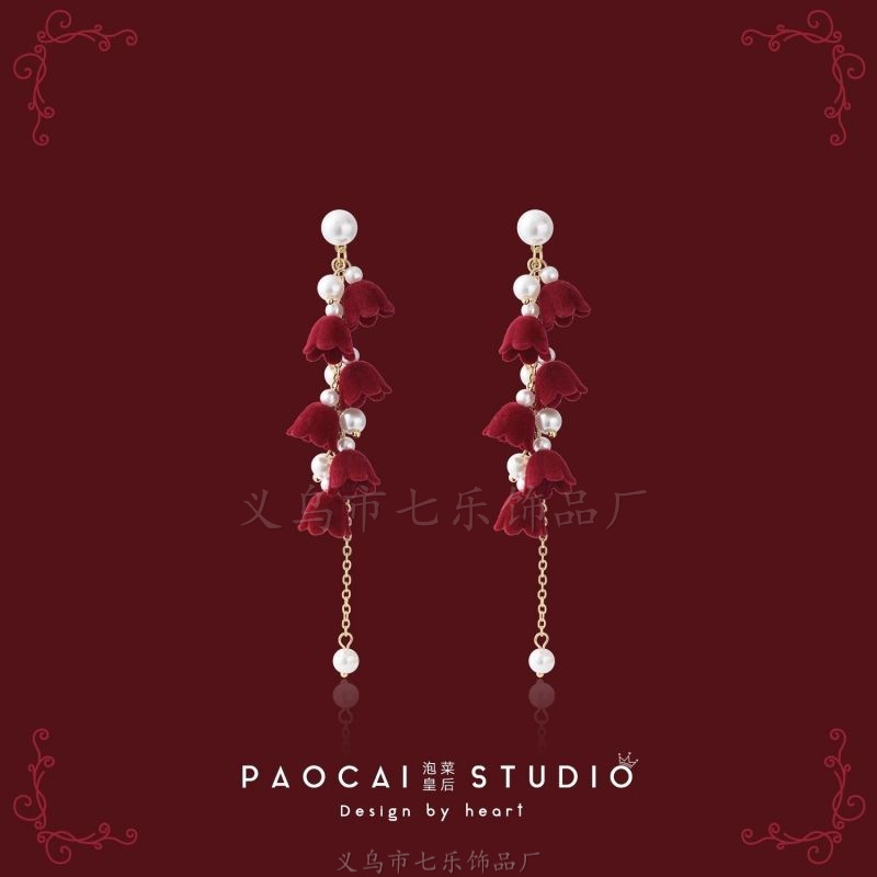 赤い本の爆発物の真珠はダイヤモンドの合金の長いイヤリングを入れます。