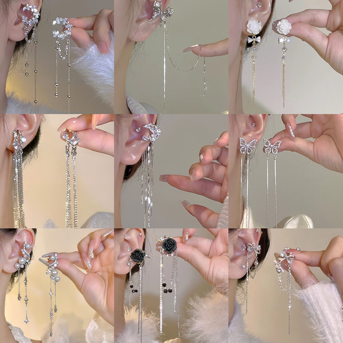 心を揺さぶる〜気質の長いタッセルシンプルなジルコンイヤリング女性用多用途ニッチデザインスーパーフェアリーインスタイルイヤークリップ