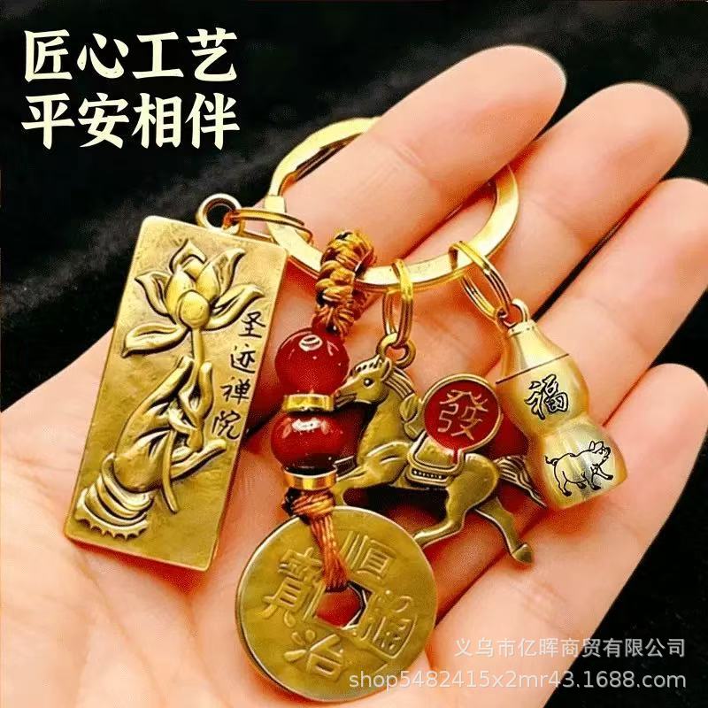黄銅龍年開金庫キーホルダー十二生肖男女本命仏五帝銭キーホルダーペンダント小プレゼント