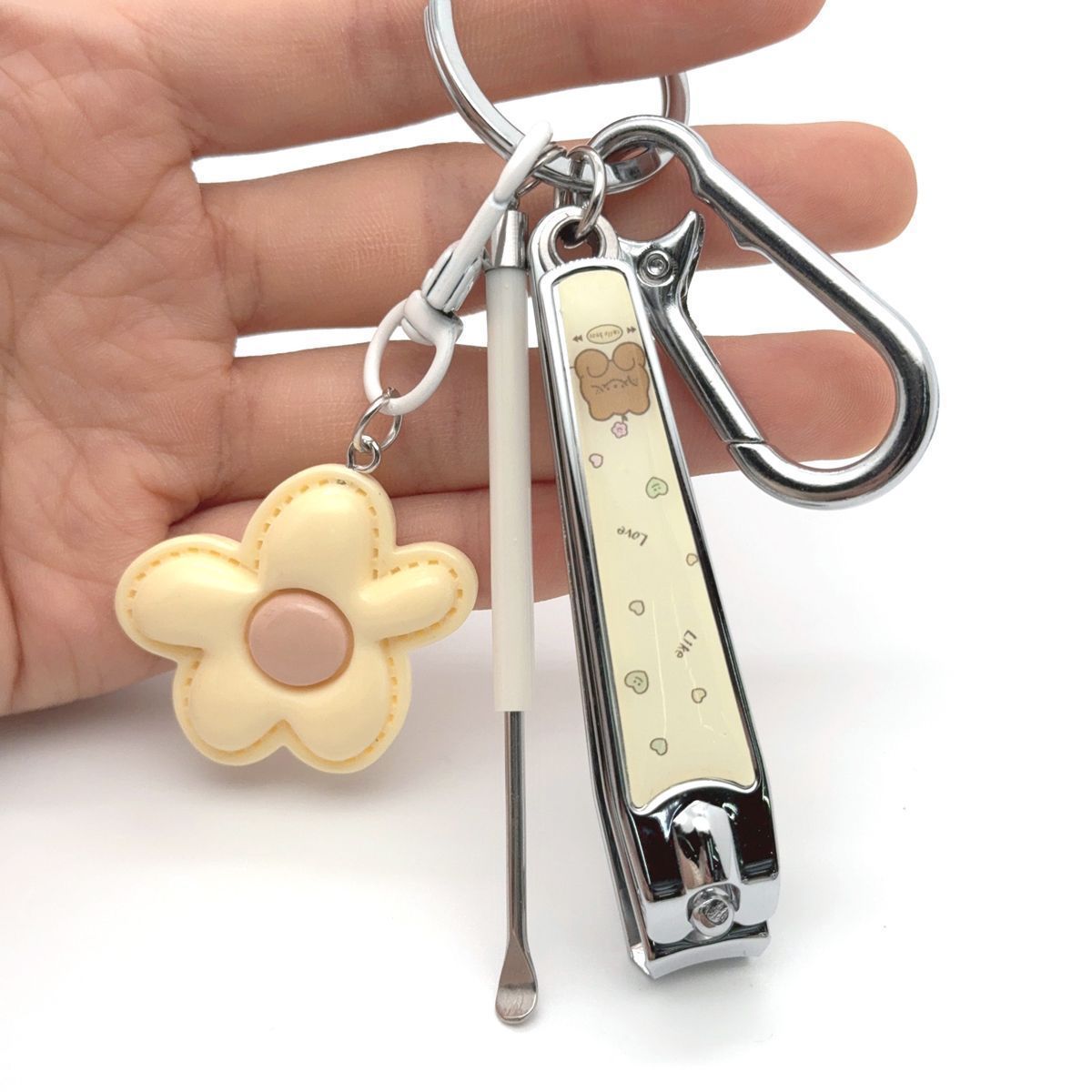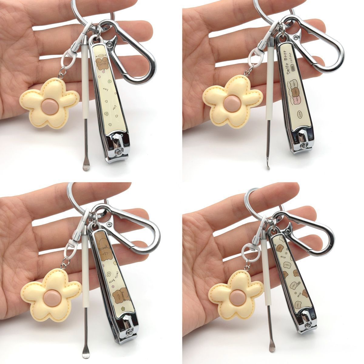 创意可爱黄油小熊钥匙扣指甲刀套装挖耳勺卡通闺蜜情侣钥匙链挂件