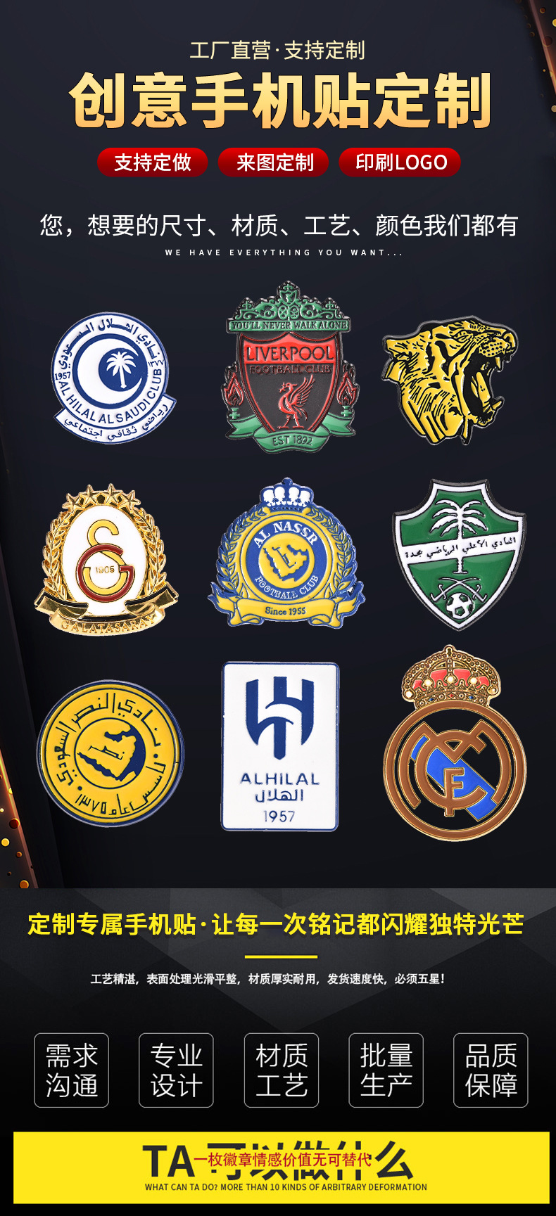 跨境金属手机贴中东国家主题套装冰箱贴球队球星卡通手机贴现货