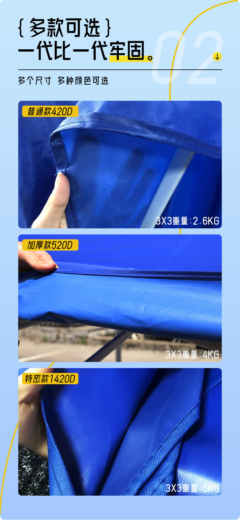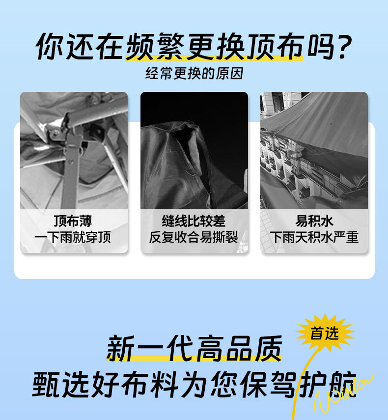 颜色 3X3特厚帆布顶布军绿,3X4.5特厚帆布顶布军绿,3X6特厚帆布顶布军绿,3X3房屋型单顶布,3X4.5房屋型专用单顶布,3X6房屋型专用单顶布,3X3八棱柱专用单顶布,3X6八棱柱专用单顶布,2X2加密银胶单顶布蓝色,2X3加密银胶单顶布蓝色,3X3加密银胶单顶布蓝色,3X4.5加密银胶单顶布蓝色,3X6加密银胶单顶布蓝色,2X2加厚牛津单顶布蓝色,2.5X2.5加厚牛津单顶布蓝色,2X3加厚牛津单顶布蓝色,3X3加厚牛津单顶布蓝色,3X4加厚牛津单顶布蓝色,3X4.5加厚牛津单顶布蓝色,3X6加厚牛津单顶布蓝色,3X3特厚牛津单顶布蓝色 5公斤重,3X4.5特厚牛津单顶布蓝色 7公斤重,3X6特厚牛津单顶布蓝色 10公斤重,2X2加厚透明顶(留言顶杆高度),2X3加厚透明顶(留言顶杆高度),3X3加厚透明顶(留言顶杆高度),3X4.5加厚透明顶(留言顶杆高),3X6加厚透明顶(留言顶杆高度)