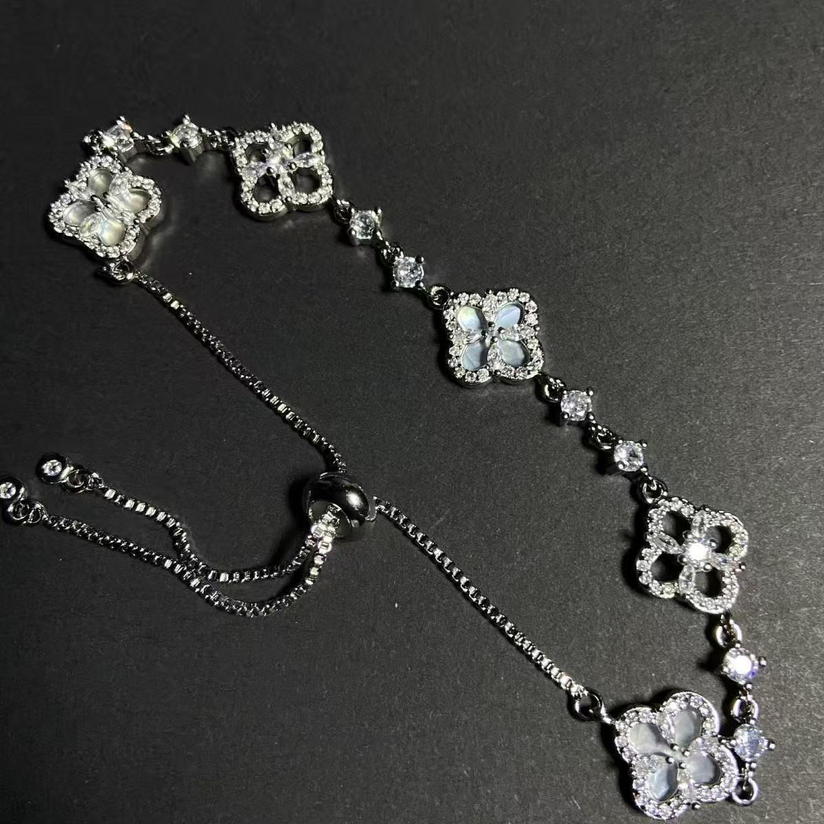 韩国四瓣花锆石花朵手链轻奢高级感气质可调节手环新款手饰女批发
