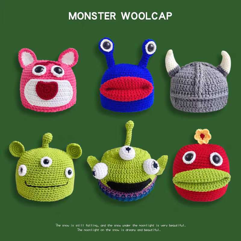 痞幼同款搞怪毛线帽女秋冬怪物卡通趣味绿色可爱卡通搞怪手工编织