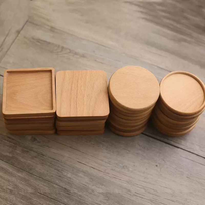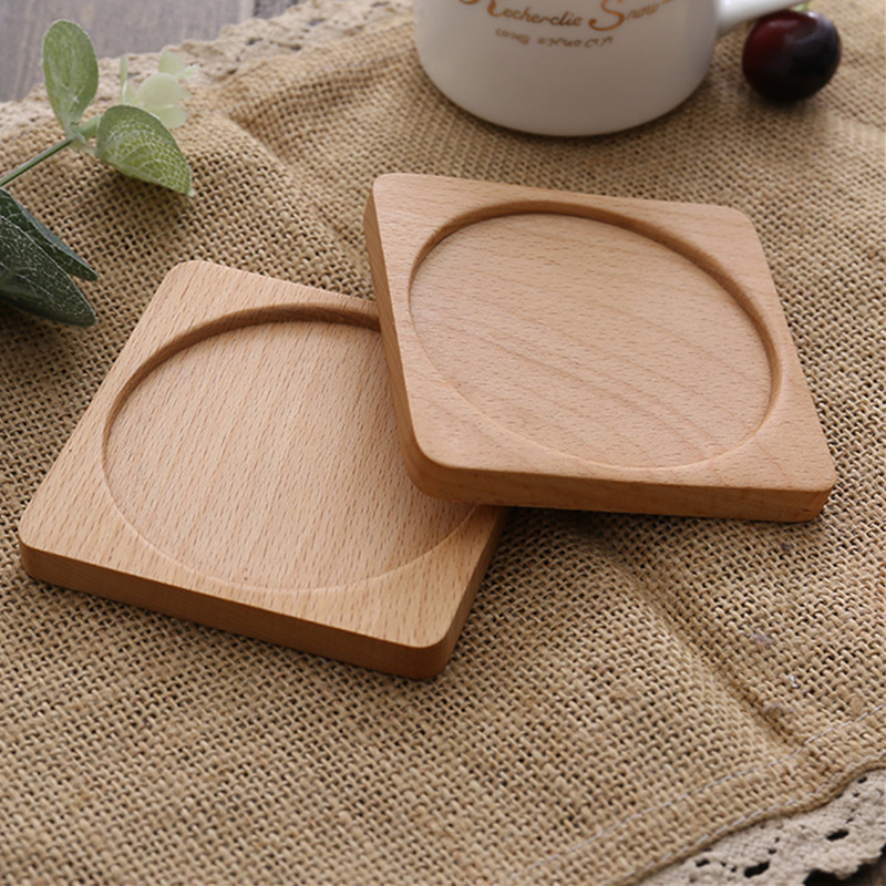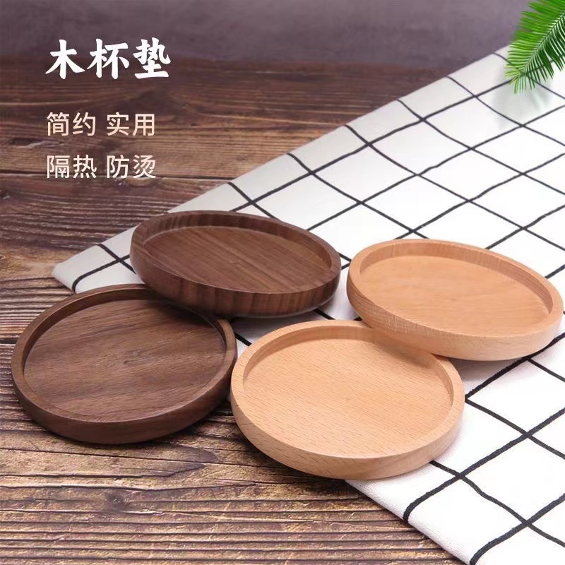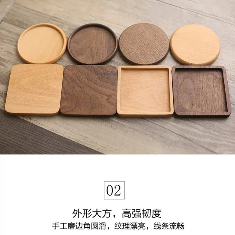 クリエイティブ木製無垢材日本コースターブナ材ブラックウォールナットコースター断熱パッド木製ティートレイティーマット木製コースター