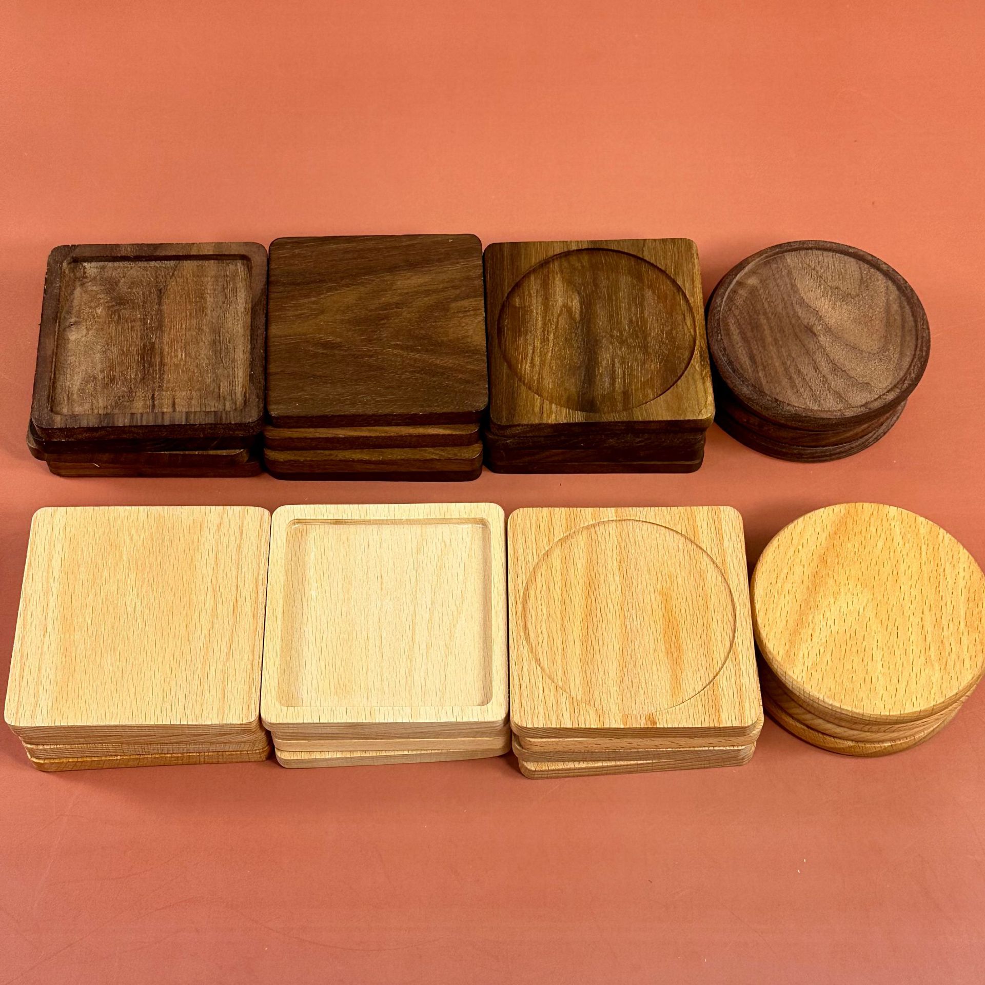 颜色 黑胡桃木(圆形10cm)杯垫,黑胡桃木(正方形10cm)杯垫,黑胡桃木(外方-内圆10cm)杯垫,榉木(圆形10cm)杯垫,榉木(正方形10cm)杯垫,榉木(外方-内圆10cm)杯垫